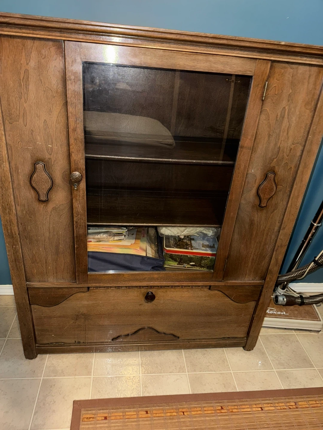 Vintage Wooden Display Cabinet with Glass Door