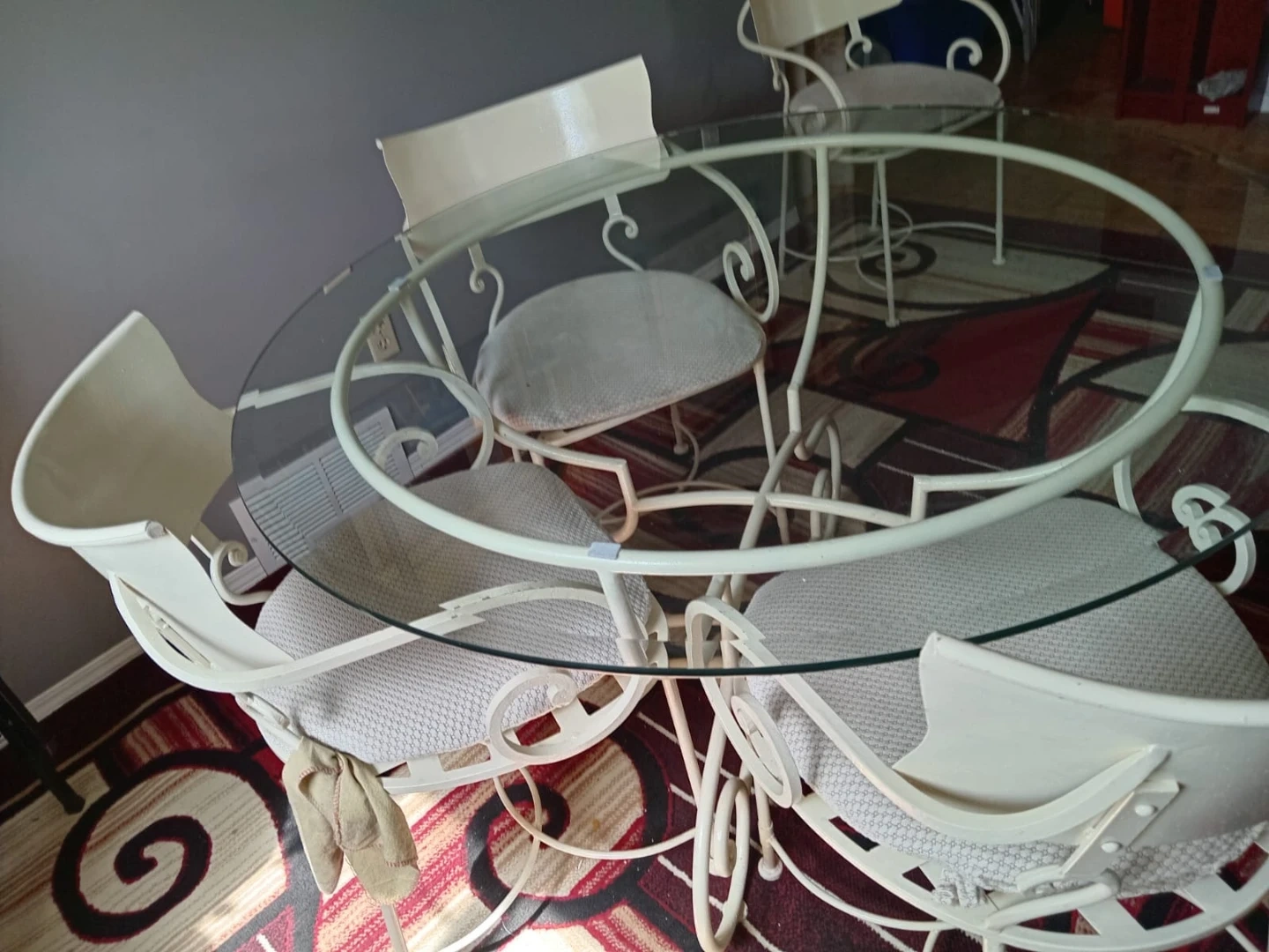 Cream Metal Dining Set with Glass Top Table and 4 Chairs