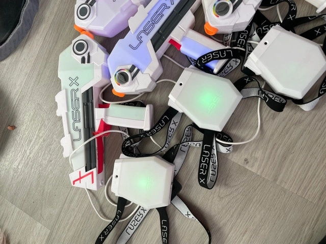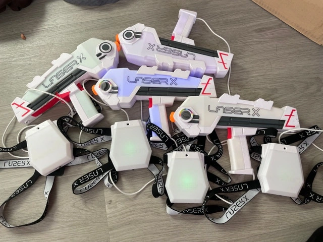 Get ready for some high-energy fun with this Laser X laser tag set! This set includes everything you need for an epic laser tag battle right in your own backyard. This Laser X set has seen a couple of battles, but is still in good condition and ready for more action. It's the perfect way to get the kids off the screens and outside enjoying some active play. Who needs a fancy arcade when you can transform your backyard into a laser tag arena? Cash accepted.