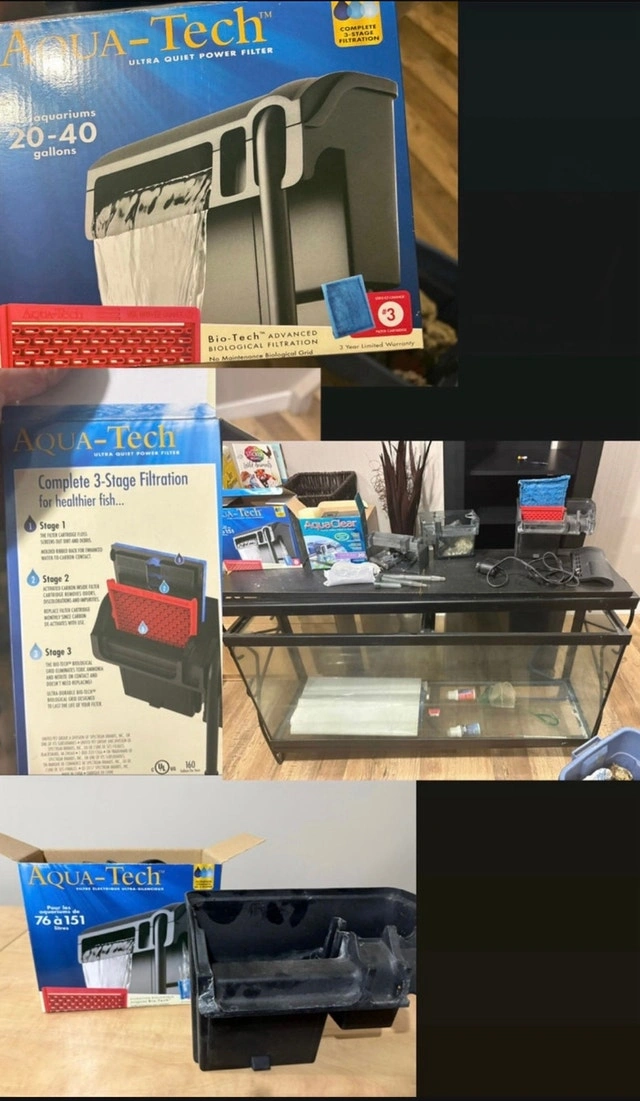 Selling a complete used 52-gallon fish tank setup, ready for a new home! Includes the tank with a decorative stand, gravel, an Aqua Clear 20 power filter, an Aqua-Tech filter for 20-50 gallon tanks, a heater, and several decorative rock and coral formations. Also included are a background, nets, 2 lights, and some water treatment solutions to get you started. Please note this setup has been used and shows signs of wear. It's perfect for someone looking to get into fishkeeping without buying everything brand new! Asking $600.00, open to negotiation. Tank size is 52 gallons. If the ad is up, the tank is still available.