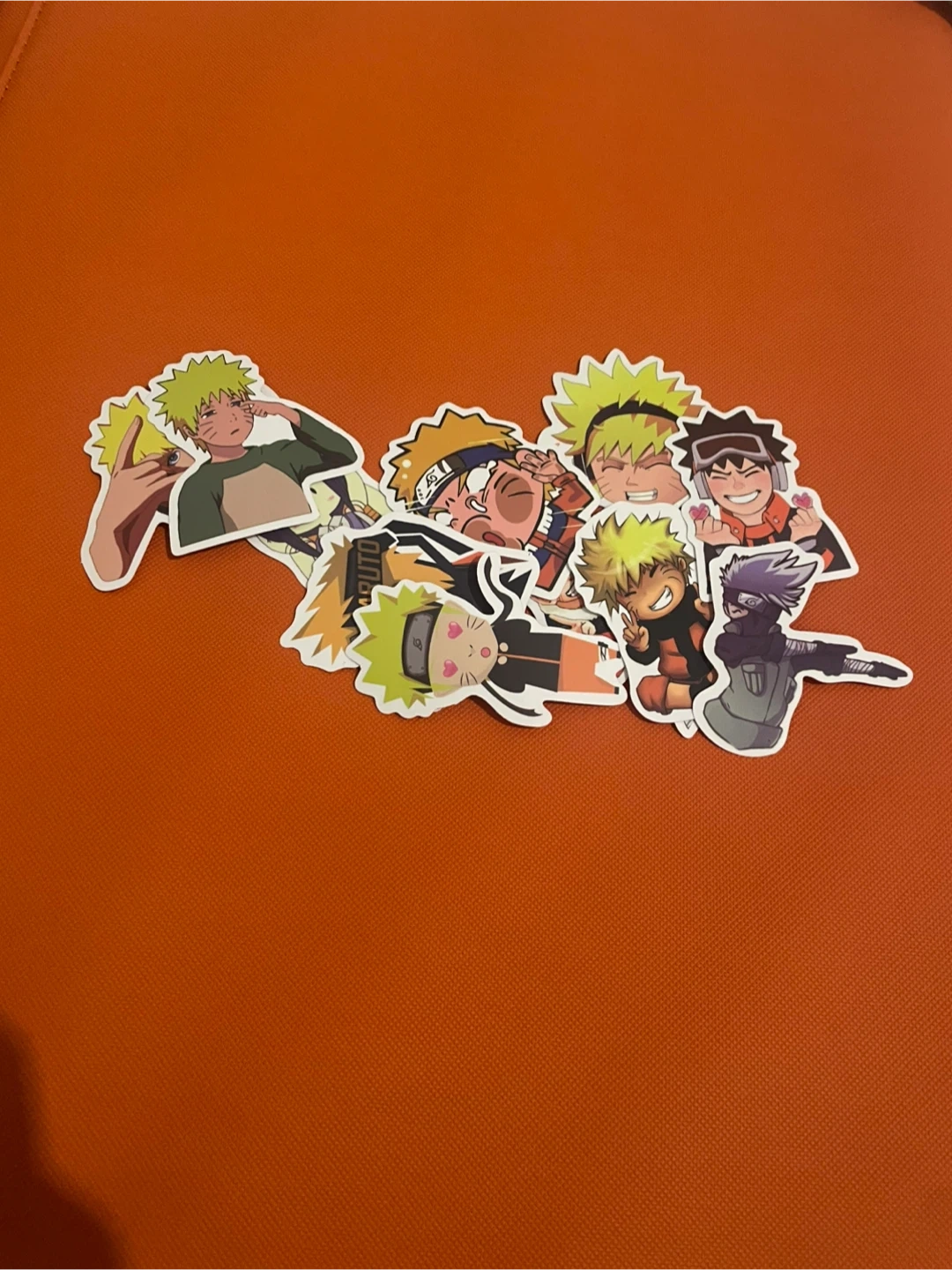 A collection of 10 vinyl stickers featuring popular characters from the Naruto anime series, like Naruto Uzumaki and Kakashi Hatake. These stickers are durable and waterproof. Perfect for decorating laptops, water bottles, or notebooks!