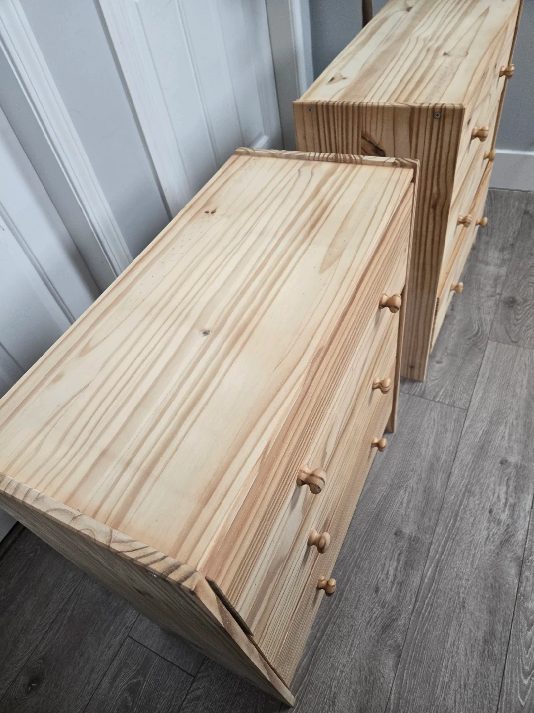 These 2 have been sanded down with a power sanders up to 180 grit. They are smooth. Use as is for the natural wood look or custom paint them.