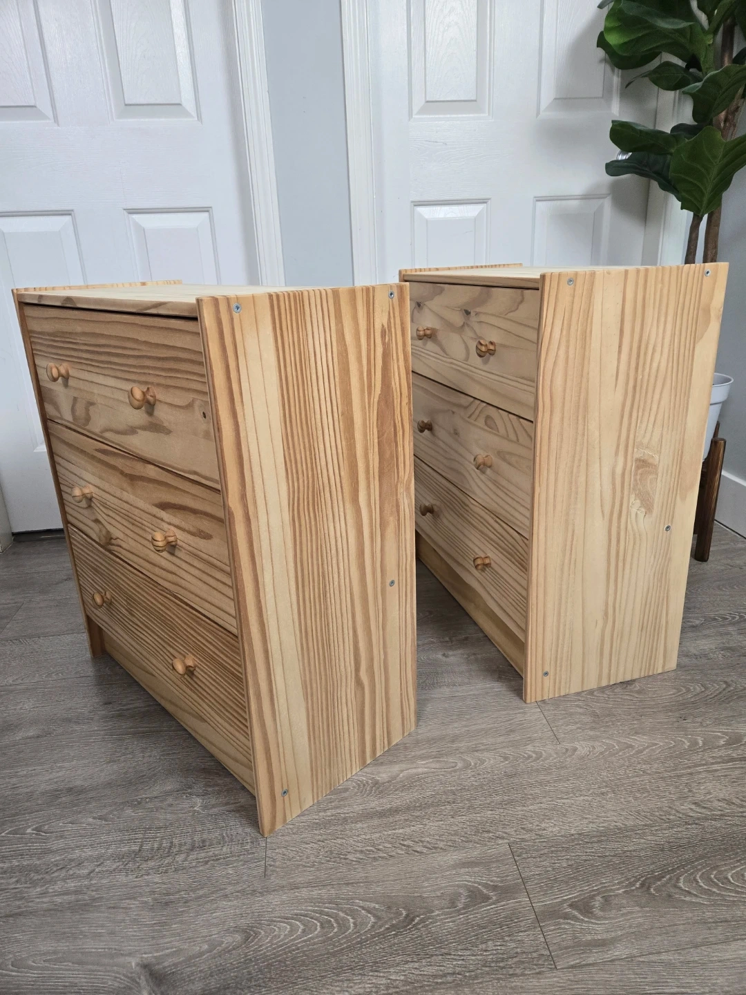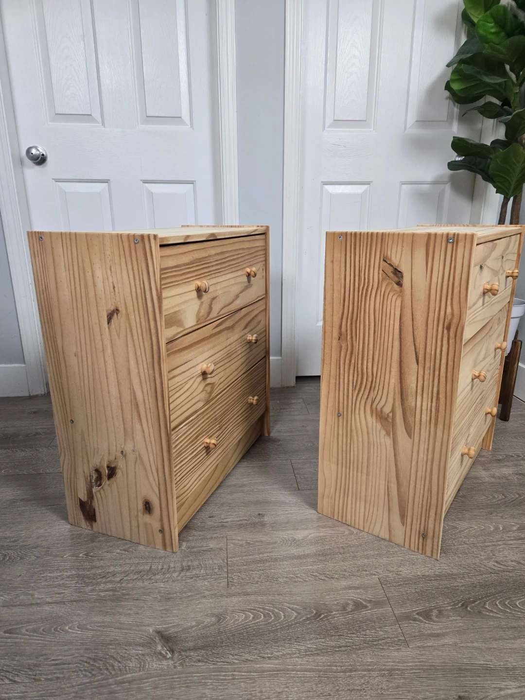 These 2 have been sanded down with a power sanders up to 180 grit. They are smooth. Use as is for the natural wood look or custom paint them.