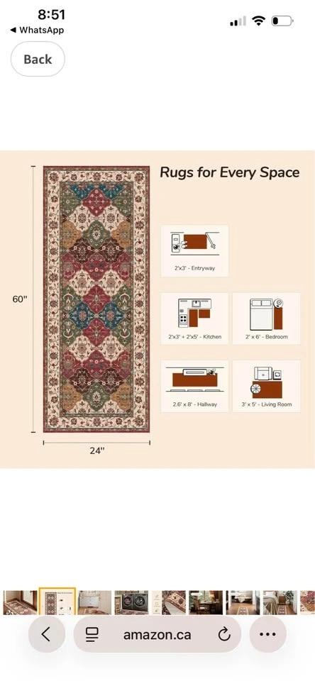 Hallway Runner Rug, 2x5 Washable