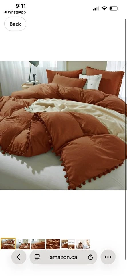 Buy & SellETDIFFE Burnt Orange Duvet Cover Queen Size, 3 PieceETDIFFE Burnt Orange Duvet Cover Queen Size, 3 Piece$69Boho Bohemian Farmhouse Pom Microfiber Bedding Comforter Cover Set, Soft and Lightweight Quilt Cover (90x90). Let me know if you're interested!WHERE TO MEETCheck LocationView MapSELLERverifiedJuneDonevan731 review0 chats·1 favorites·5 viewsSEND CHAT TO SELLERHi June! I’m interested in your listing.Hi June! I’m interested in your listing.Get the Karrot app to chatSign In to chat