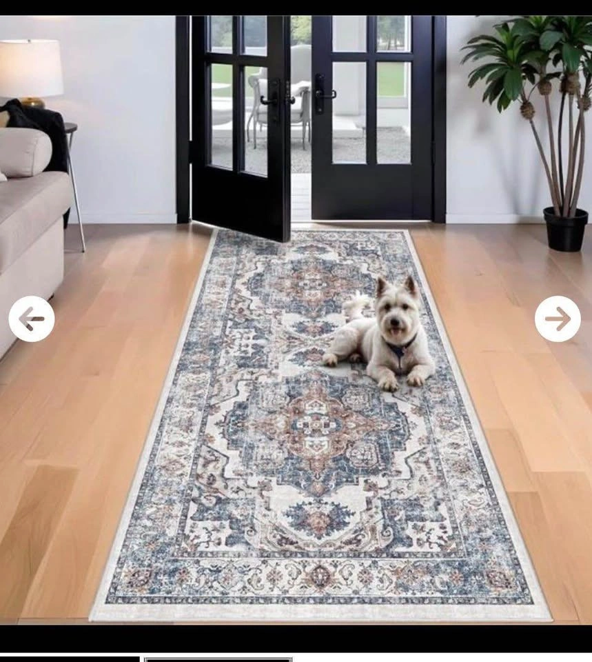Washable 4x8 hallway area rug. Vintage 8ft water-resistant soft runner rug, suitable for entry, kitchen, living room, bedroom, bathroom, and dining room. Non-slip, wide, low pile carpet. Thin floor mat. Brick color.