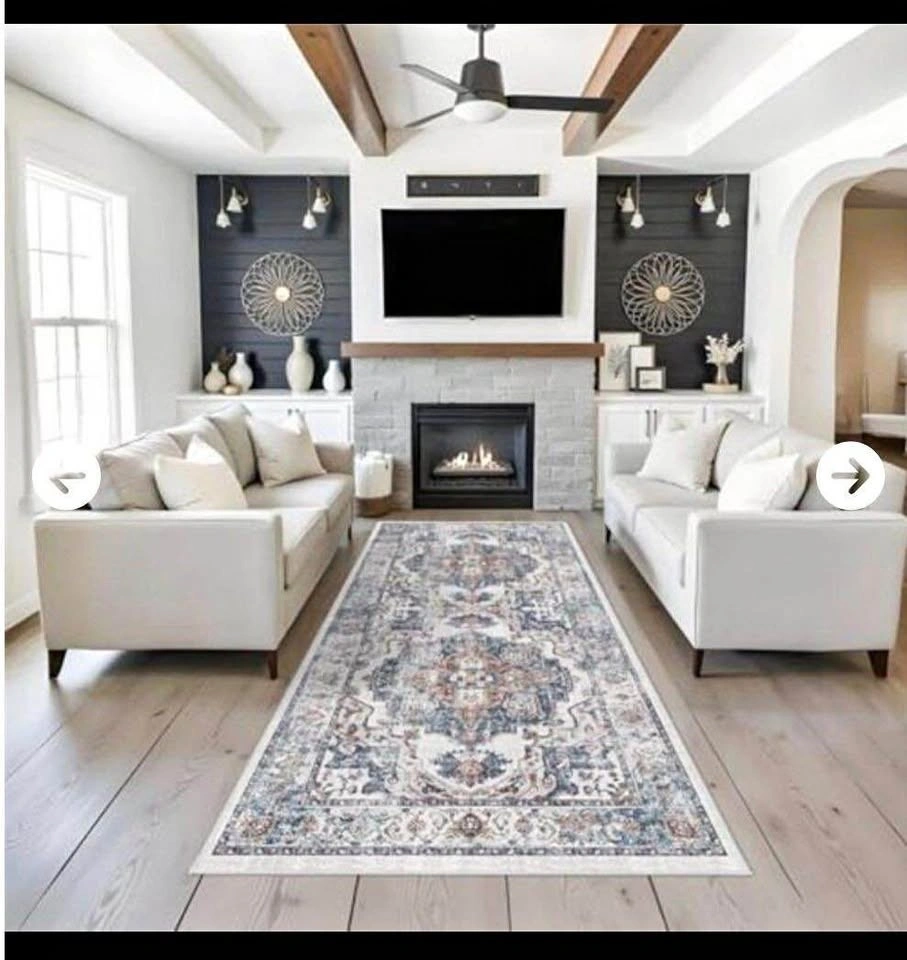 Washable 4x8 hallway area rug. Vintage 8ft water-resistant soft runner rug, suitable for entry, kitchen, living room, bedroom, bathroom, and dining room. Non-slip, wide, low pile carpet. Thin floor mat. Brick color.