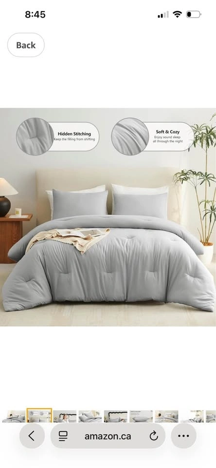 CozyLux Light Grey Queen Comforter Set, 3 Pieces. Light Gray Solid Breathable Quilted Bedding Set. Luxury soft fluffy bed set with down alternative comforter for all seasons. Includes 1 comforter and 2 pillowcases. Feel free to message if you have any questions!