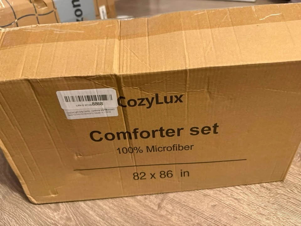 CozyLux Light Grey Queen Comforter Set, 3 Pieces - sealed