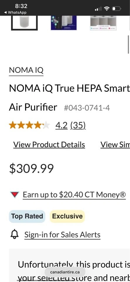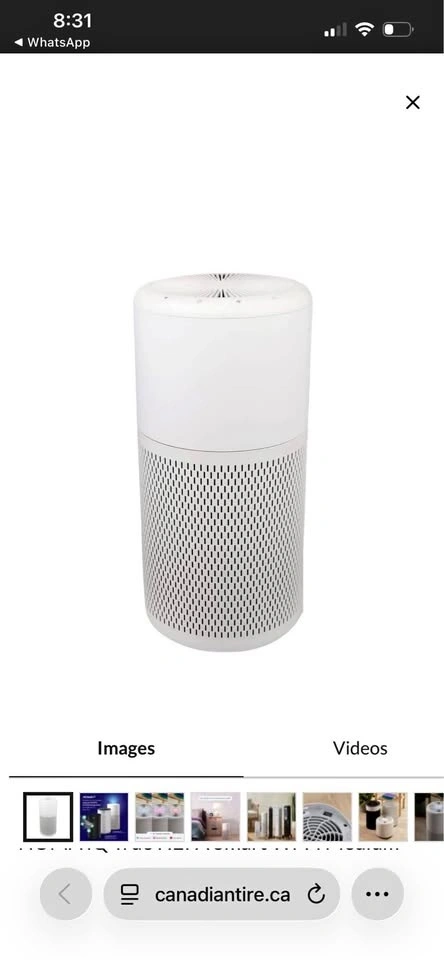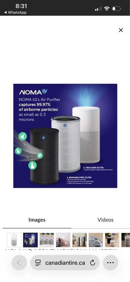 This NOMA iQ air purifier features True HEPA filtration and Smart Wi-Fi connectivity, suitable for medium-sized rooms. It effectively removes airborne particles for cleaner indoor air.