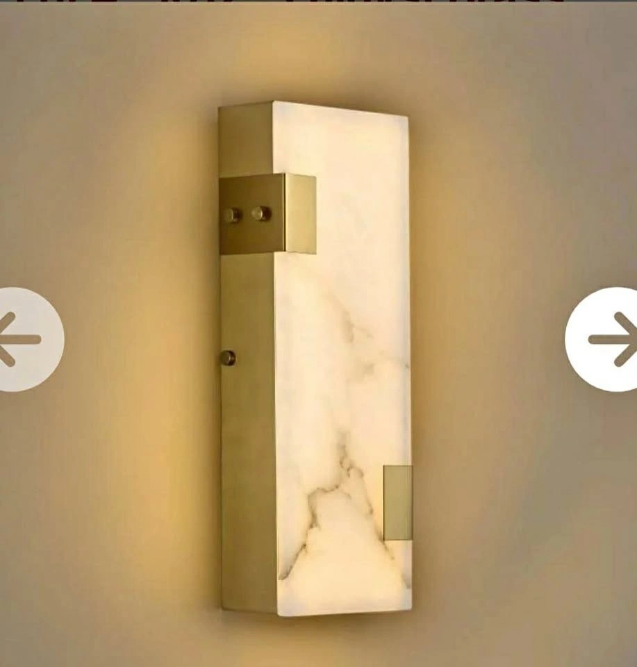 This is a Fuloyst Brass Natural Alabaster Wall Sconce, 14.17 inches tall. It's a modern, dimmable LED lamp featuring natural alabaster, sometimes described as Spanish Marble. It's suitable for bedrooms, living rooms, hallways, vanities, or stairs. Feel free to message if you have any questions!