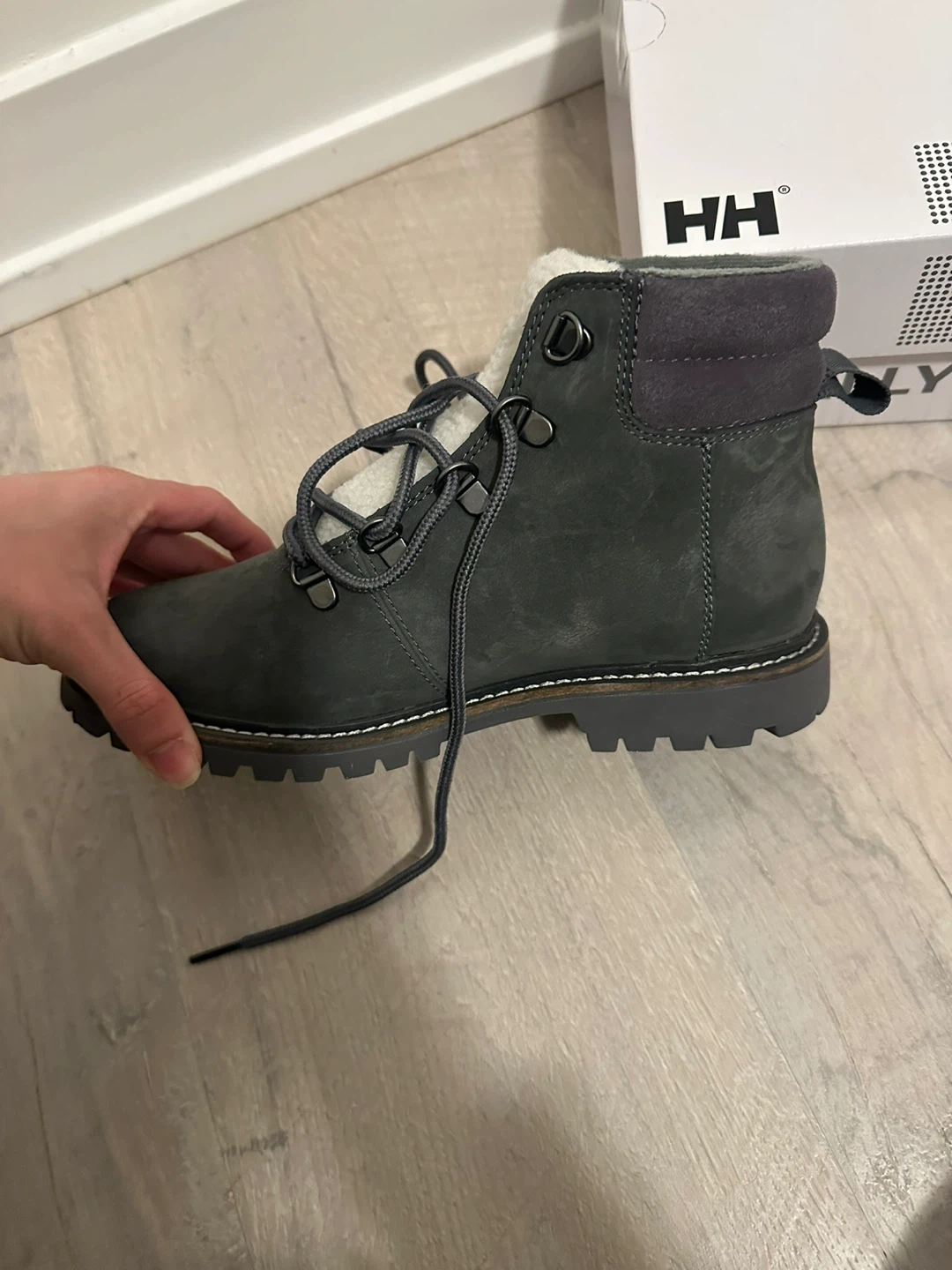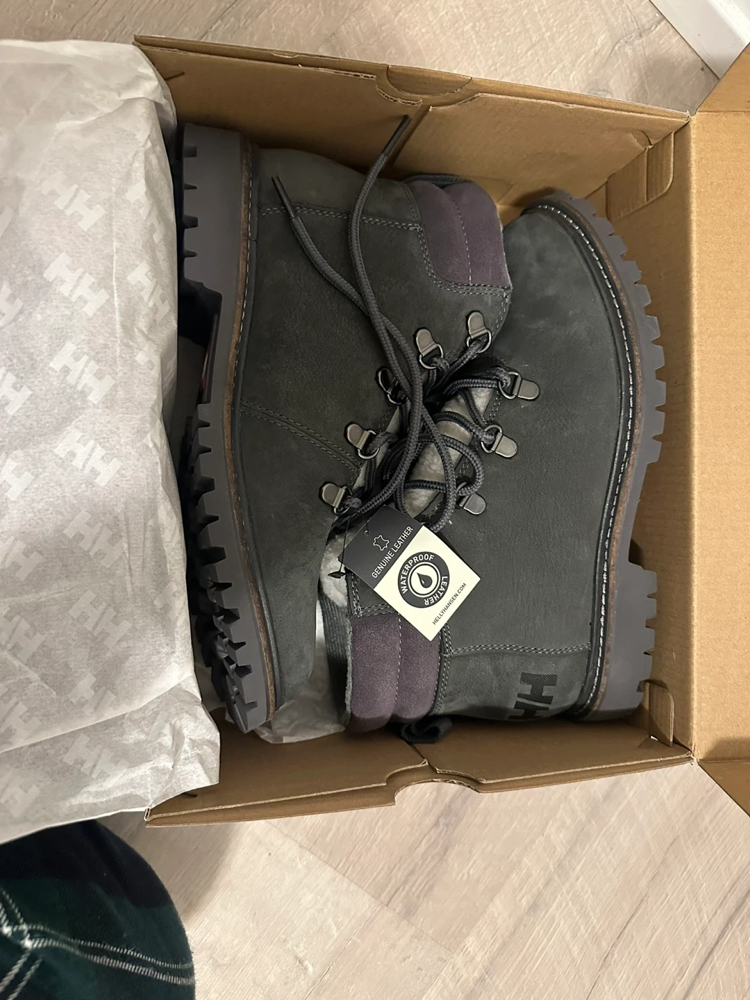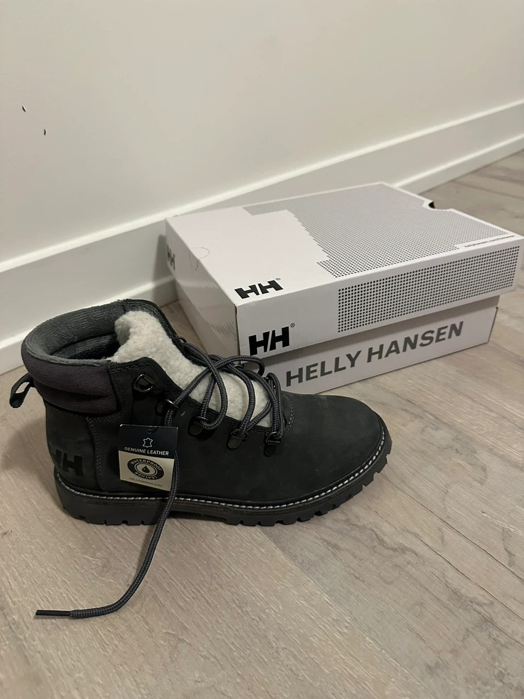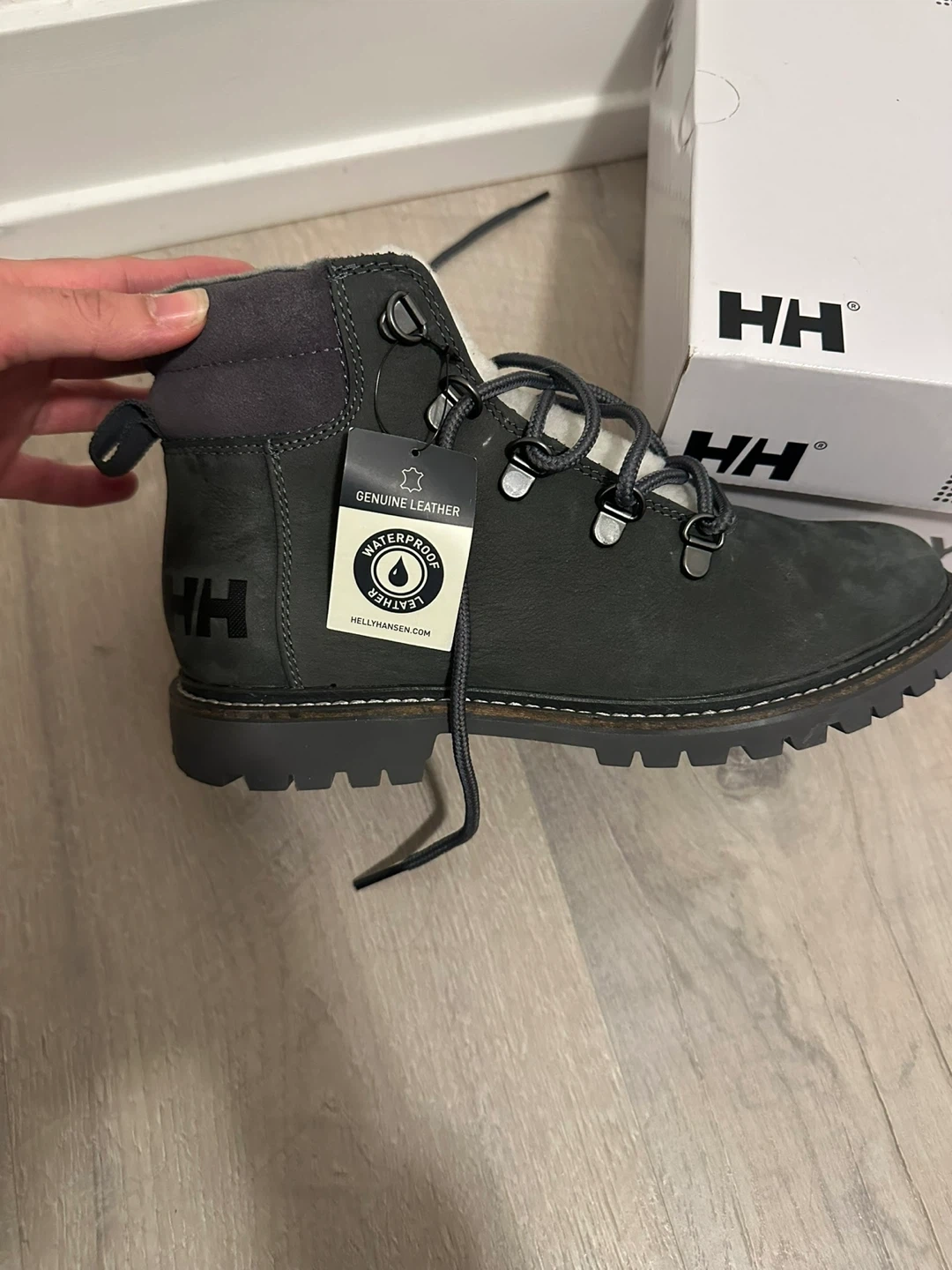 Helly Hansen winter boots crafted from genuine leather. They're waterproof and feature a cozy shearling lining. Comes with the original box.