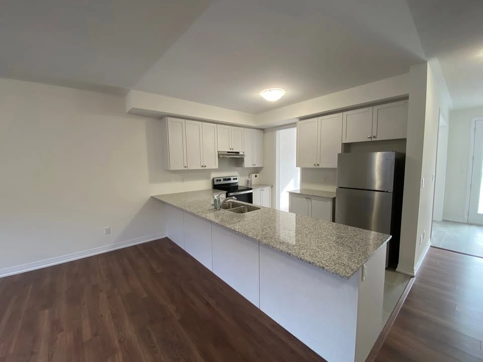 Modern townhouse, 1 bedroom available for lease in Whitby. Conveniently located near HWY401 and HWY412 at Taunton, close to amenities. Features 9 ft ceilings, lots of natural light, upgraded flooring (no carpet), brand new stainless steel appliances, and quartz counters with a breakfast bar.