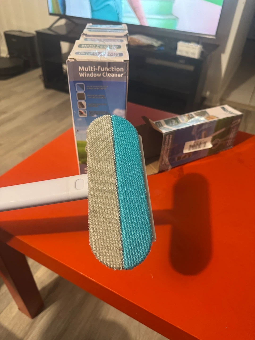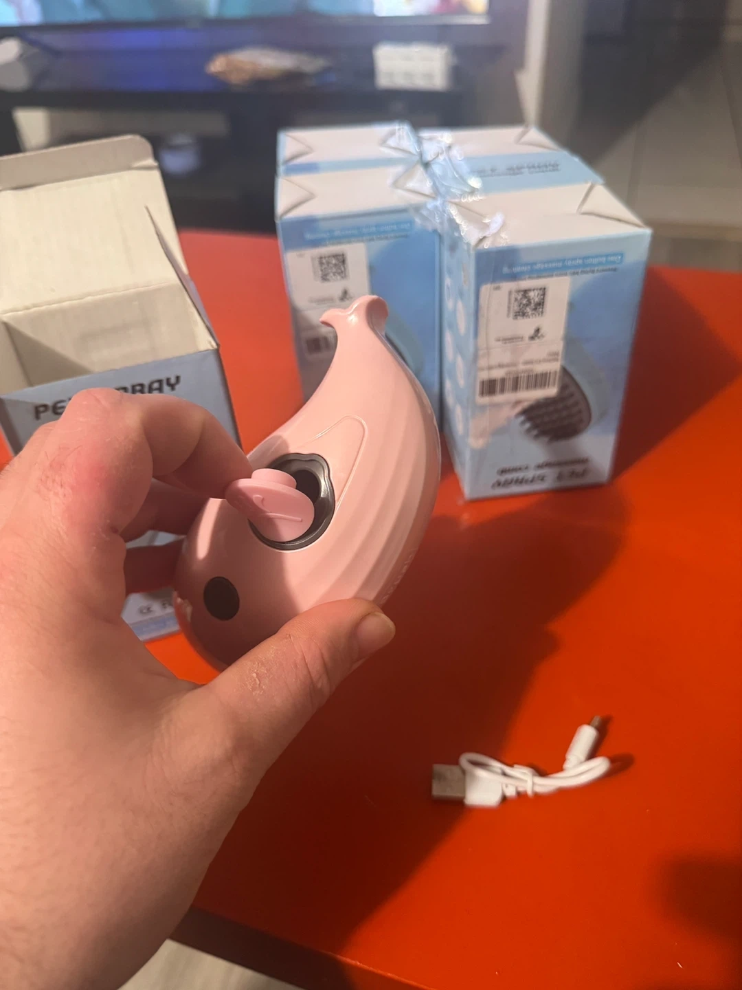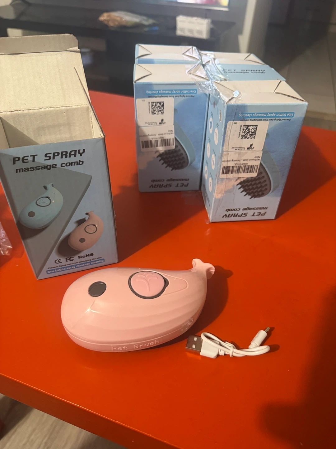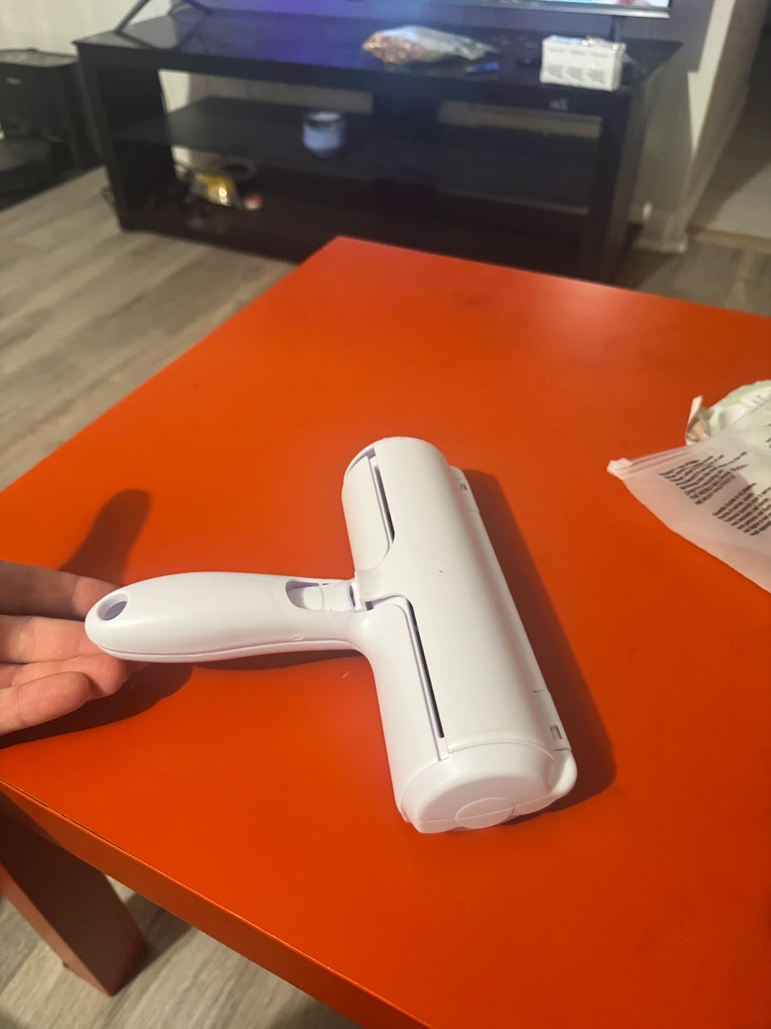 This is a rechargeable lint roller set. It comes with the main roller unit, a large cleaning brush, a smaller handheld brush, and a USB charging cable. It's great for removing pet hair and lint from fabrics!