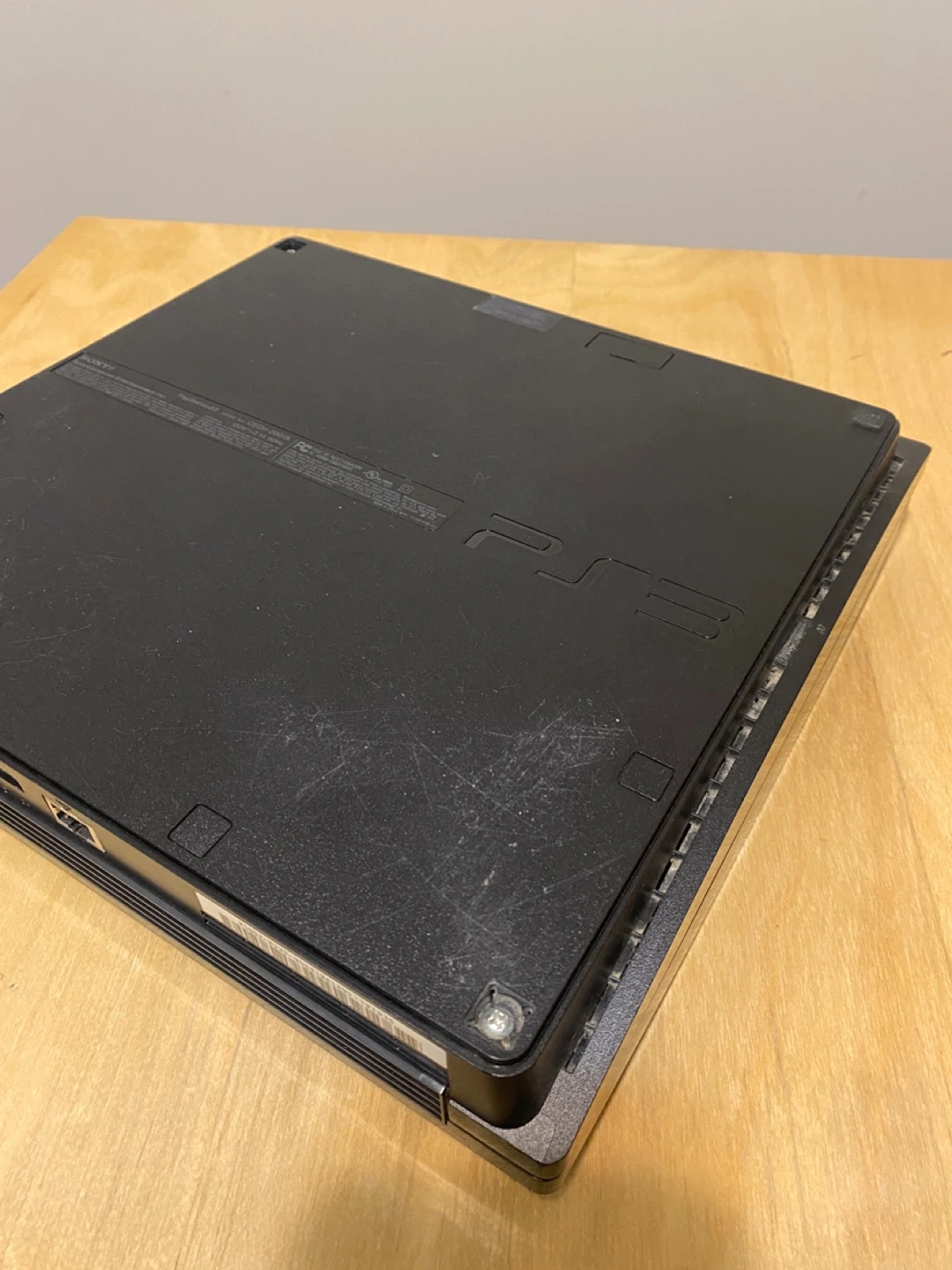 The console has some normal cosmetic wear from use, along with a bit of dust in the vents and ports, which is common for older systems and doesn’t affect performance.
