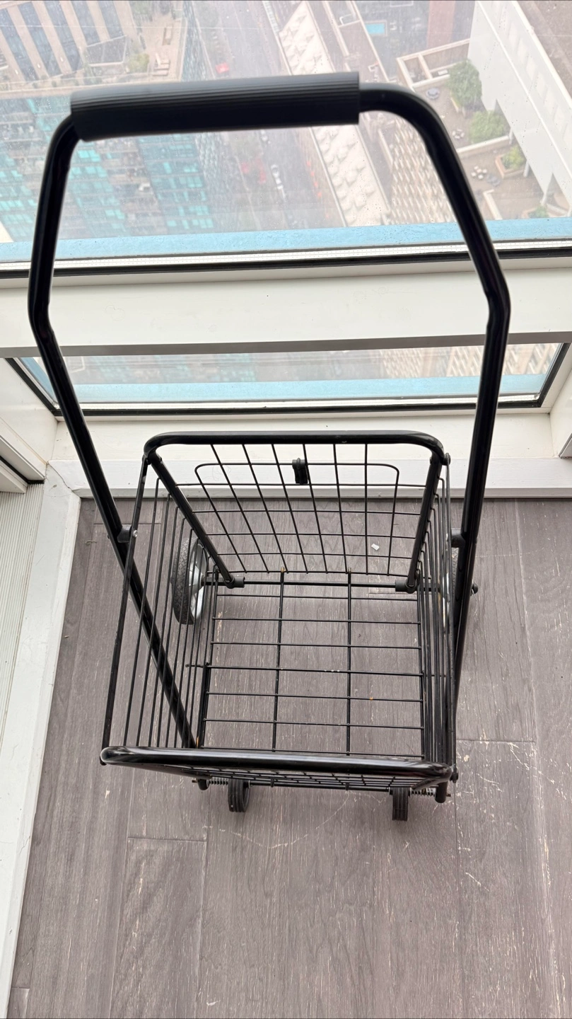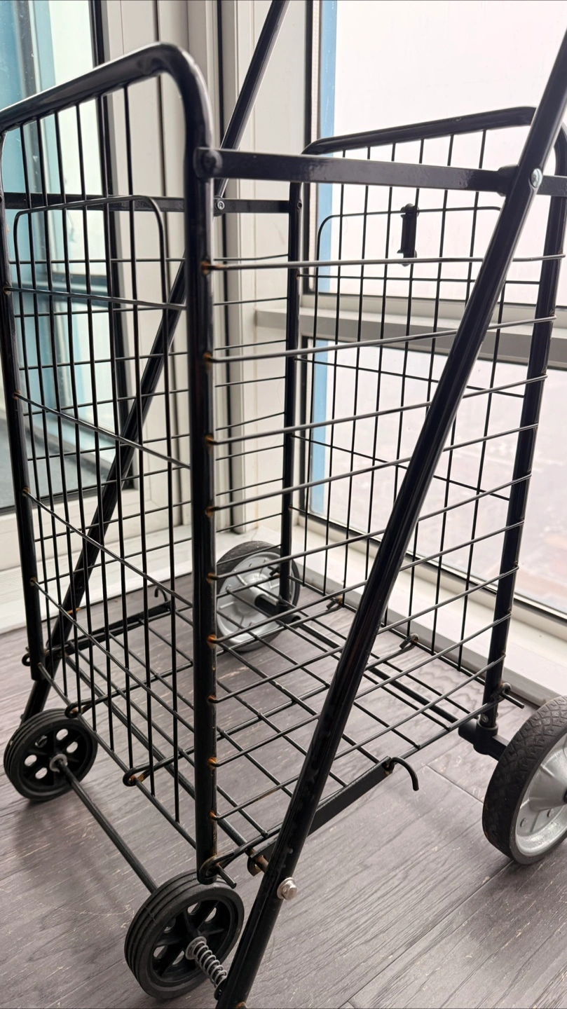 Need a reliable, spacious cart for groceries, laundry, or everyday hauling? This heavy-duty folding shopping cart is sturdy and smooth-rolling with swivel front wheels and durable rubber back wheels.