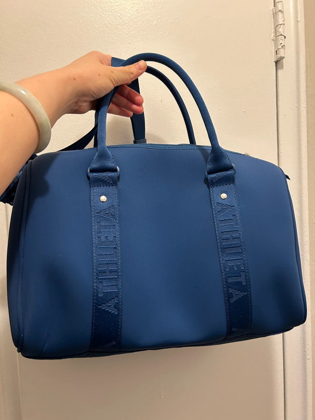 Selling a brand new, never used Athleta bag in a beautiful navy blue. This bag is super versatile and perfect for the gym, travel, or daily commute.