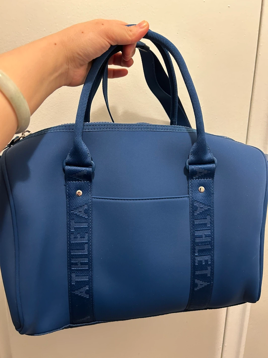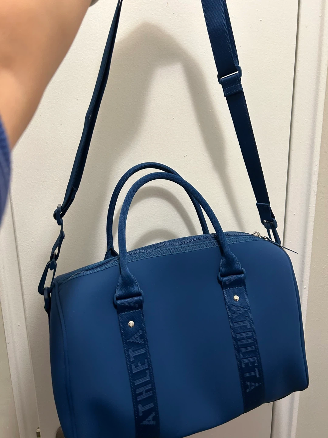 Selling a brand new, never used Athleta bag in a beautiful navy blue. This bag is super versatile and perfect for the gym, travel, or daily commute.