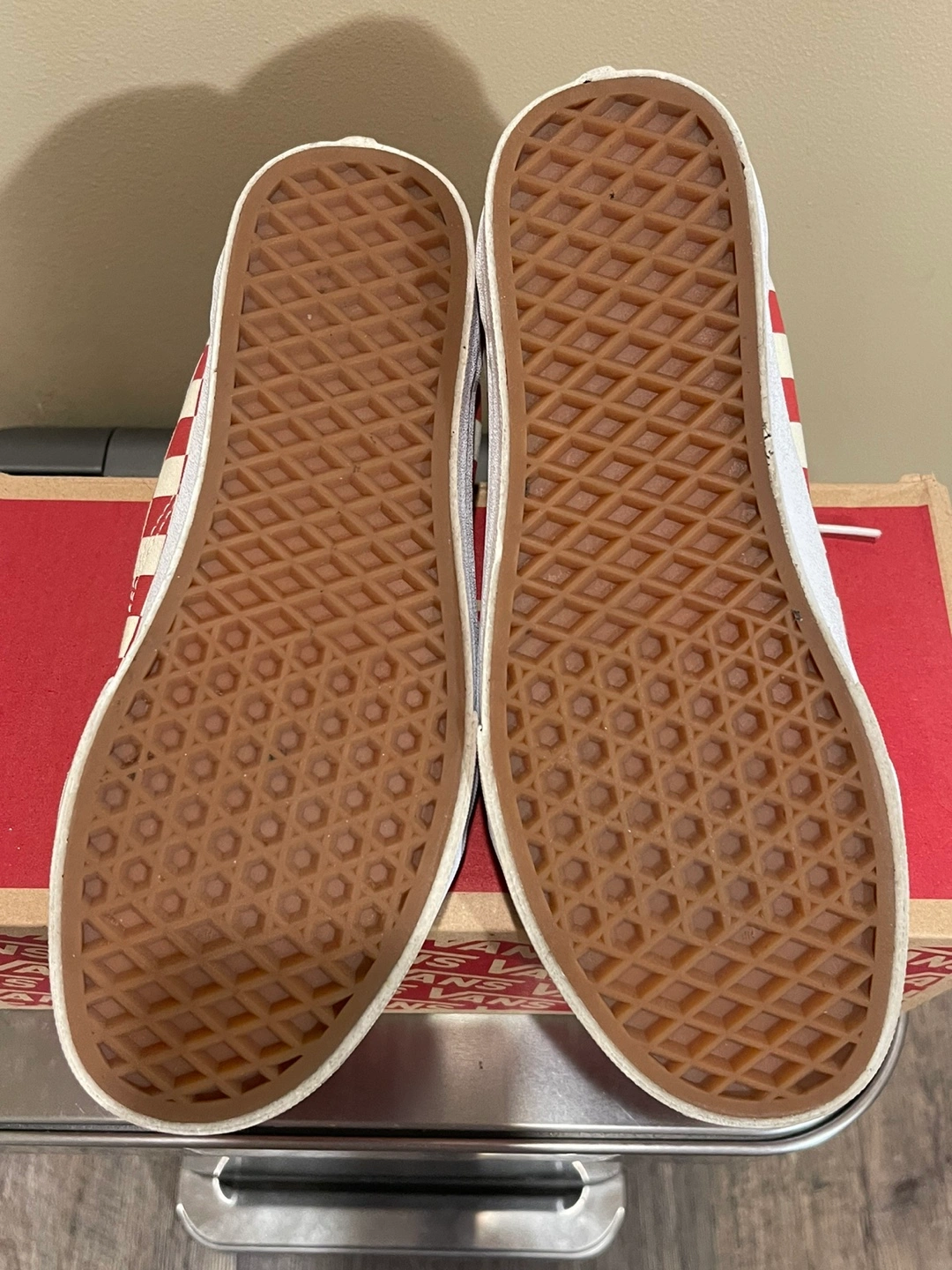 🧡 Vans Checkerboard Red White Skate Shoes Size 7.5 Women's