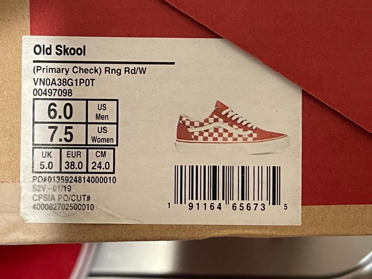 Vans Old Skool Checkerboard Skate Shoe - Red / White Size M 6 / W 7.5 $50