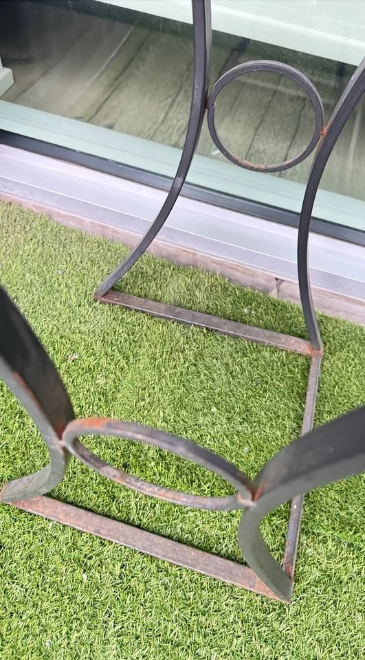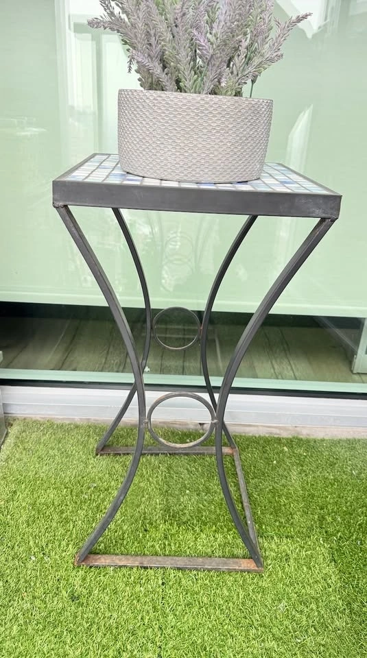 Beautiful mosaic patio side table — perfect for balconies, patios, or small outdoor spaces. In good overall condition. There is some light surface rust on the lower legs from outdoor use.