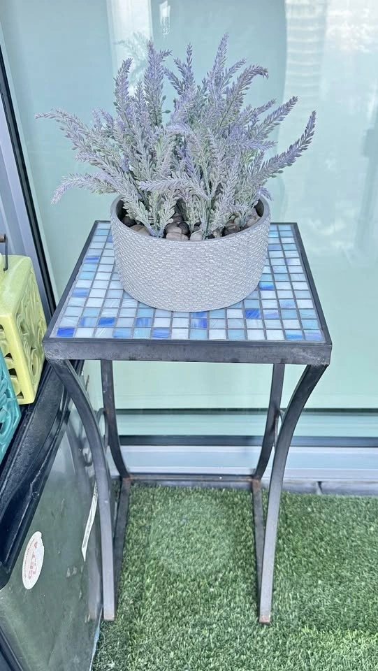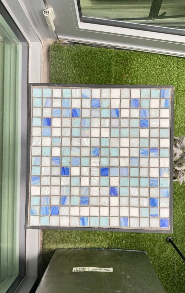 Beautiful mosaic patio side table — perfect for balconies, patios, or small outdoor spaces. In good overall condition. There is some light surface rust on the lower legs from outdoor use.