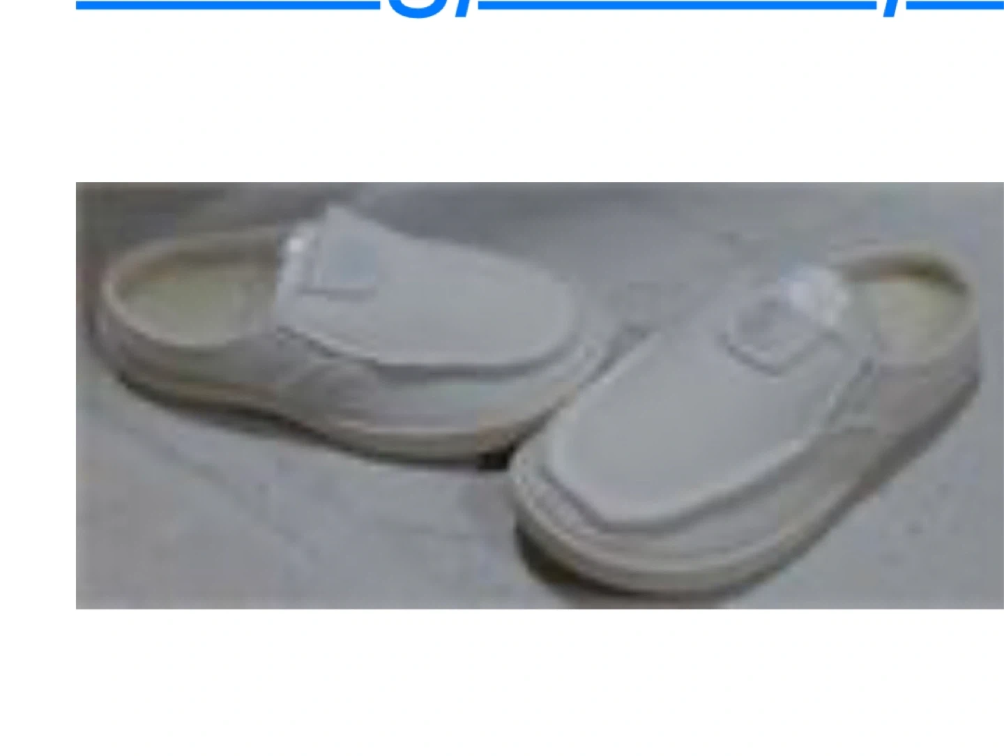 These are white slip-on shoes with a hook-and-loop closure for easy wear. They appear to be made of a synthetic material with a cushioned insole. These shoes offer a casual and comfortable fit.