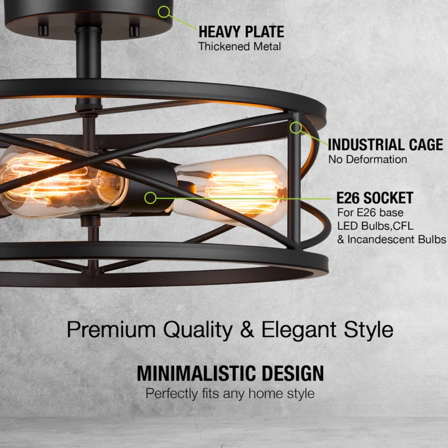 Qplus 3-Light Semi-Flush Mount Light Fixture - Black