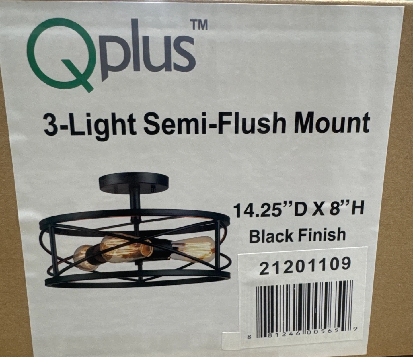 This Qplus 3-Light Semi-Flush Mount fixture has a black finish. It's 14.25" D x 8" H. This light would be great for a hallway or entryway.