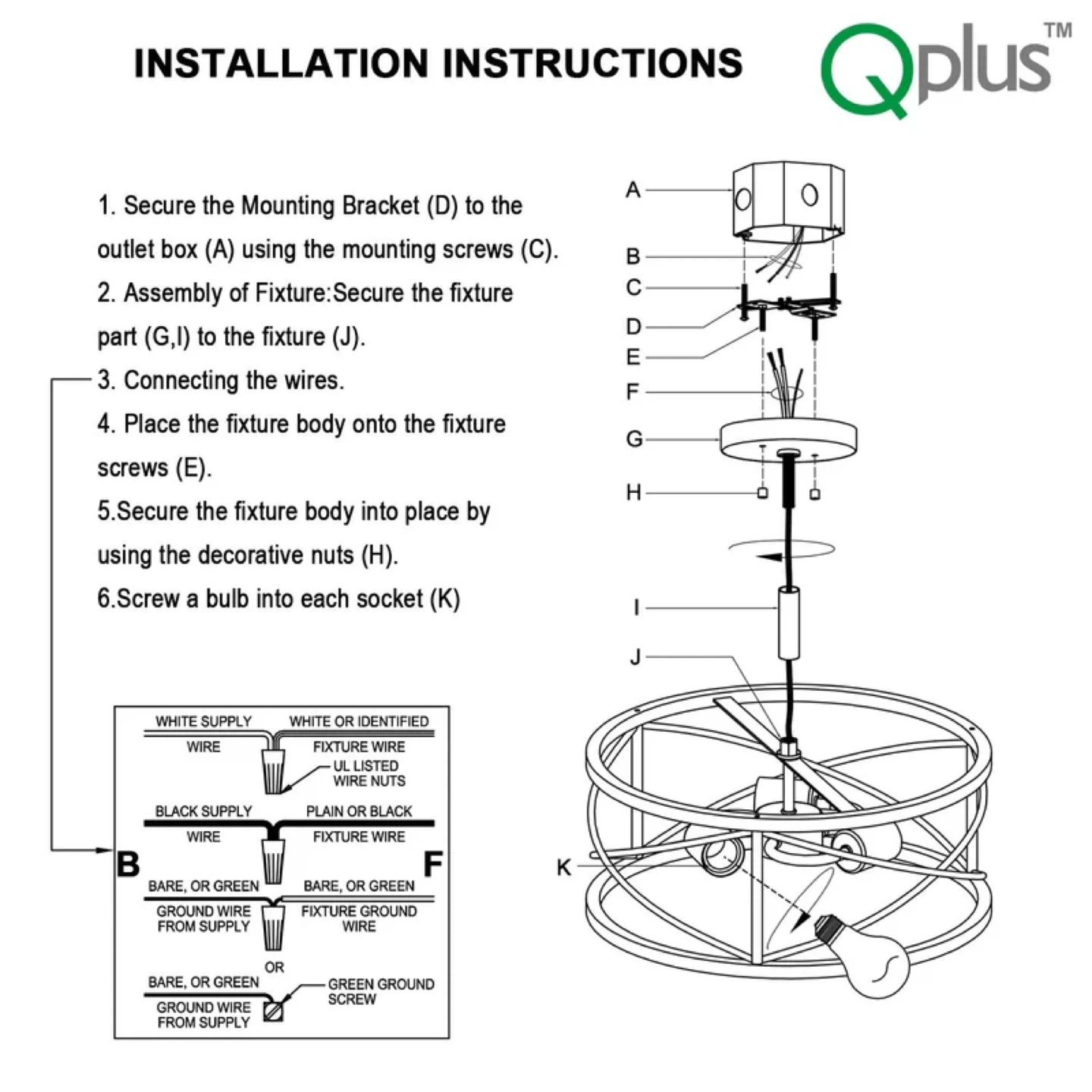 Qplus 3-Light Semi-Flush Mount Light Fixture - Black