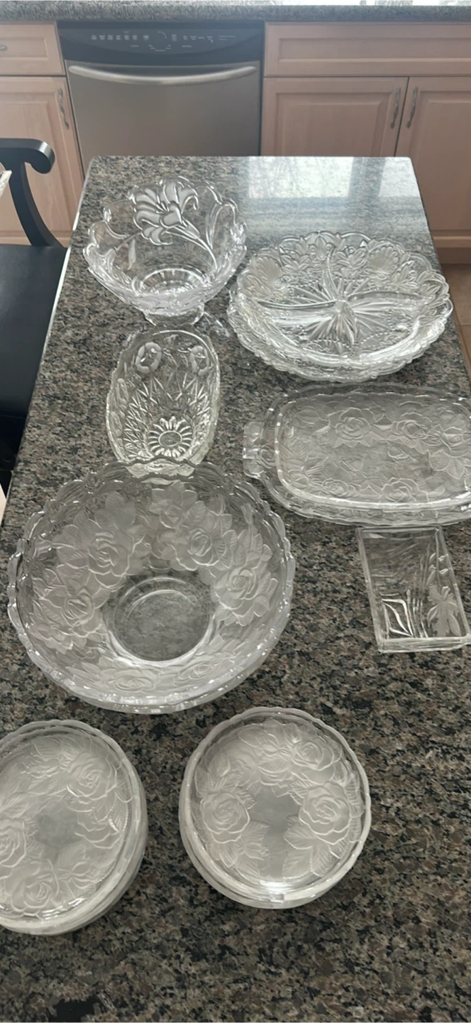 Glass serving dishes and bowls