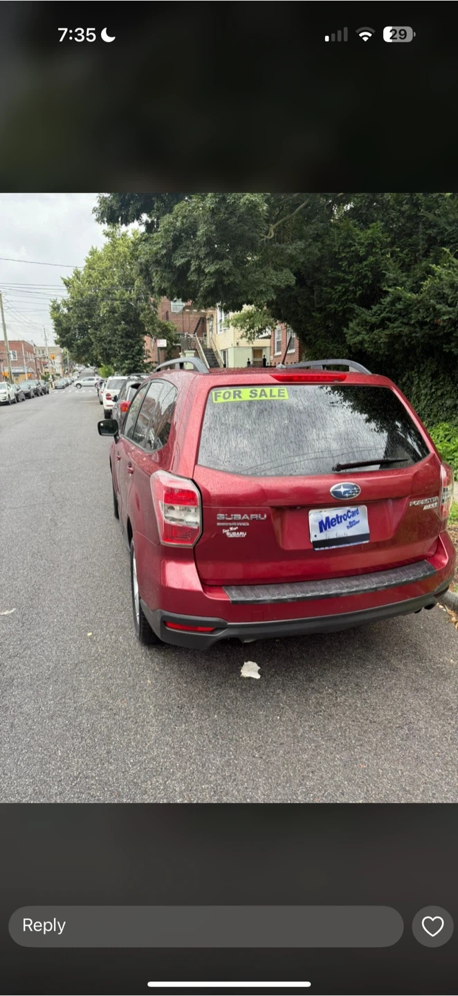 Buy & SellRed Subaru Forester 2015Red Subaru Forester 2015$5,199Selling a red Subaru Forester 2014ConditionLike newWHERE TO MEETCheck LocationView MapSELLERAlbert MartinezWilliamsbridge100 reviews7 chats·4 favorites·317 viewsSEND CHAT TO SELLERHi Albert Martinez! I’m interested in your listing.Hi Albert Martinez! I’m interested in your listing.Get the Karrot app to chatSign In to chat