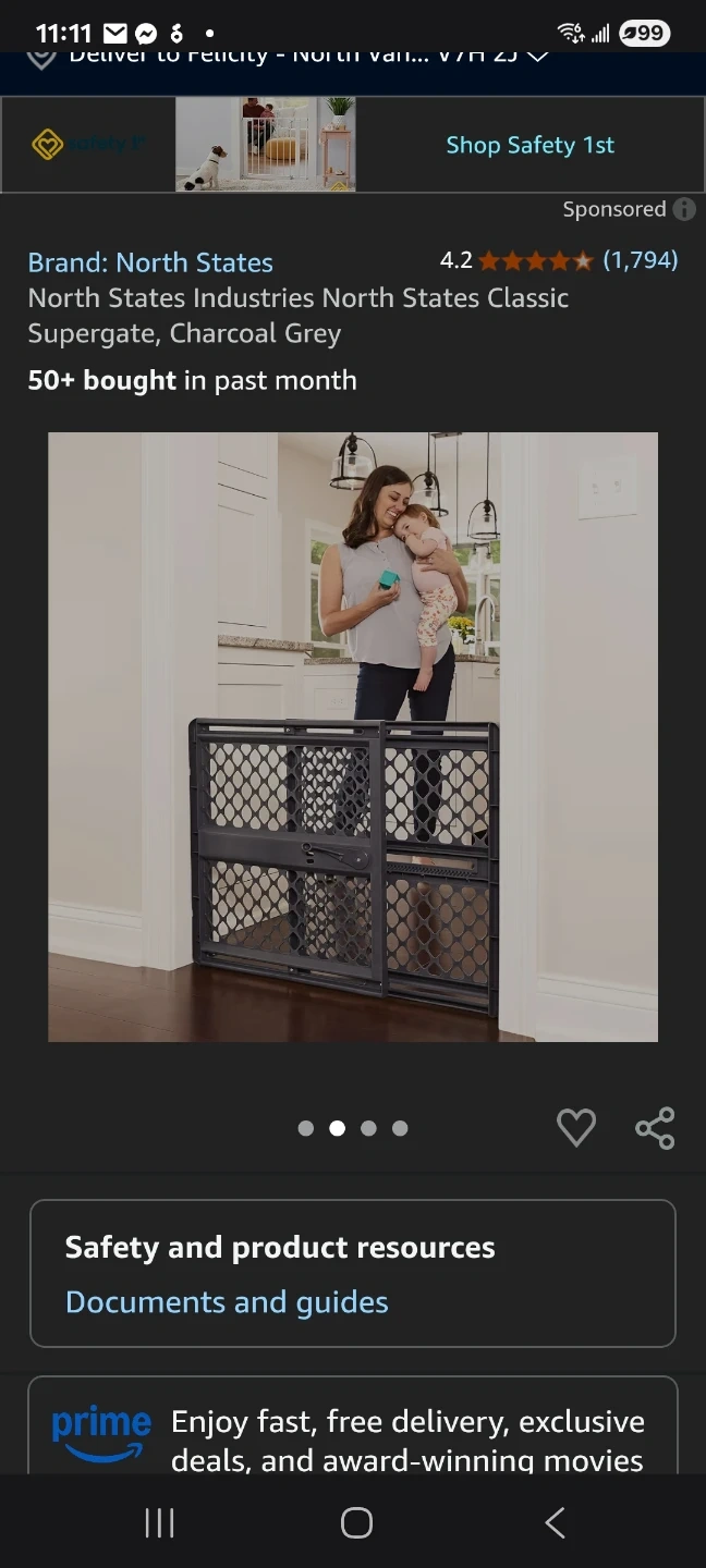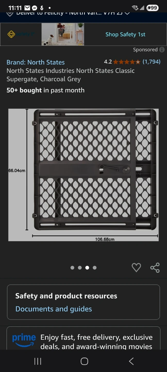 This North States Industries Supergate is designed for safety and convenience. It's charcoal grey and measures 106.68cm wide by 66.04cm high. It's perfect for keeping little ones safe and contained.