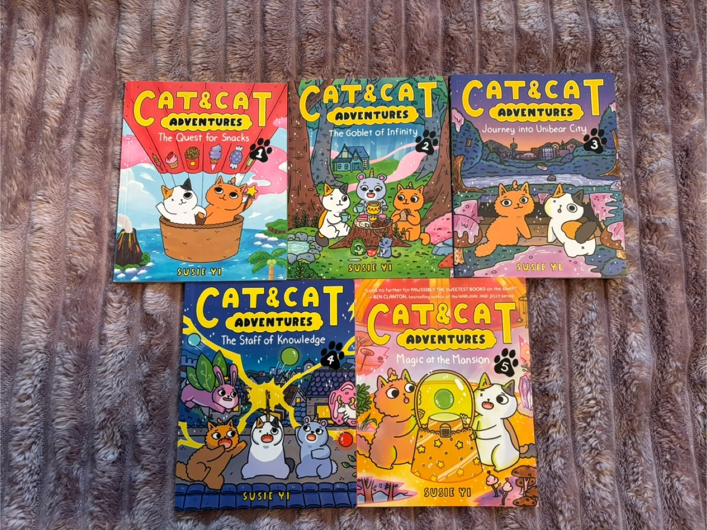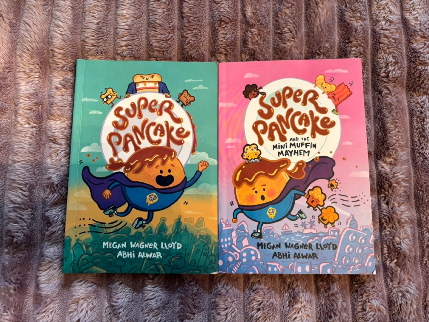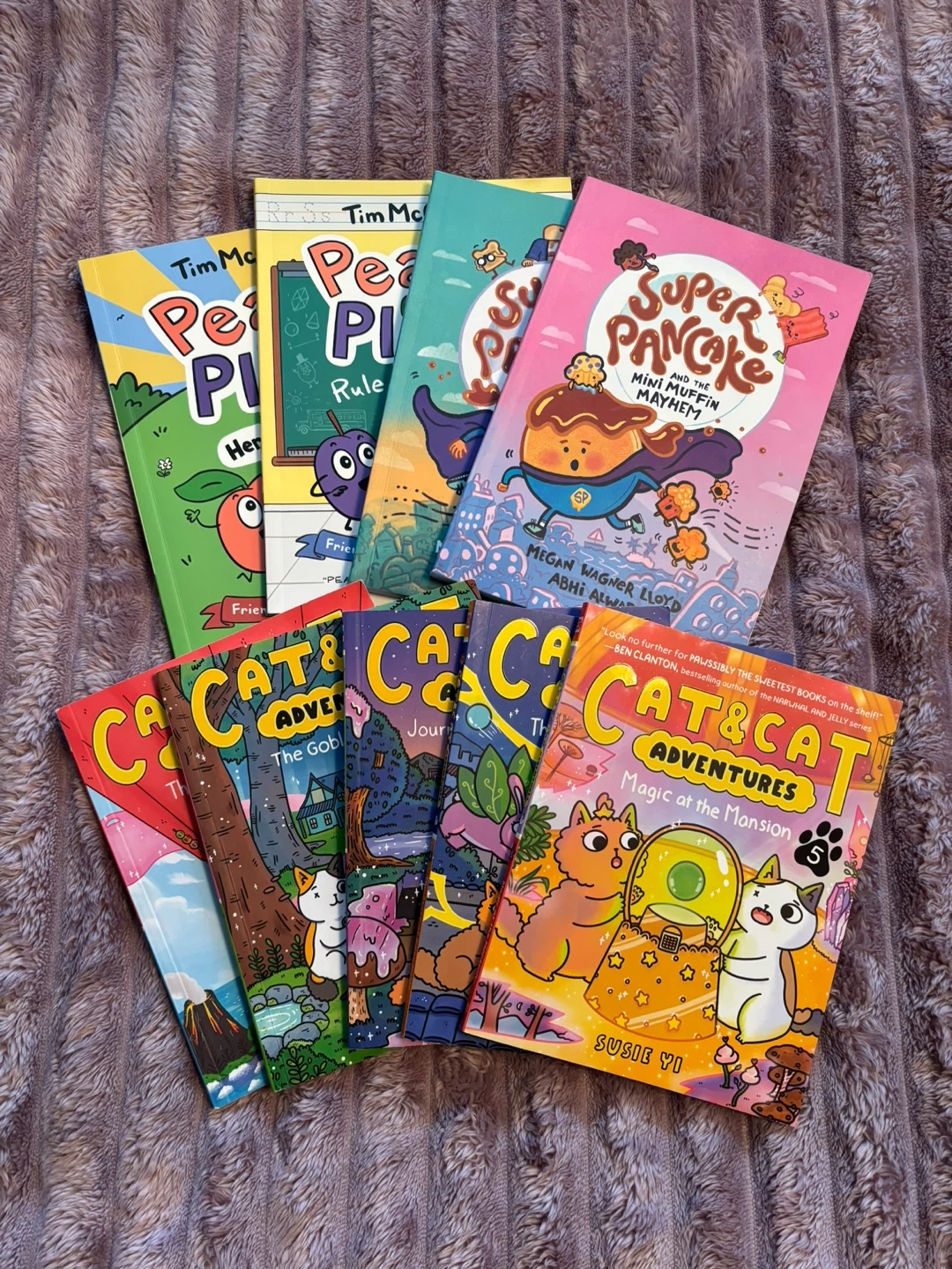 This is a bundle of children's graphic novels including two 'Peach & Plum' books by Tim McCAnna, five 'Cat & Cat Adventures' books by Susie Yi, and two 'Super Pancake' books by Megan Wagner Lloyd and Abhi Alwar.