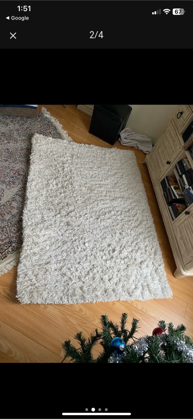 White shag area rug. Soft and plush texture. Adds warmth and comfort to any room. Was used in staging for home sales. 1 4 x 6 and 1- 5 x 7 - no pets or smoke. Great condition. Your choice