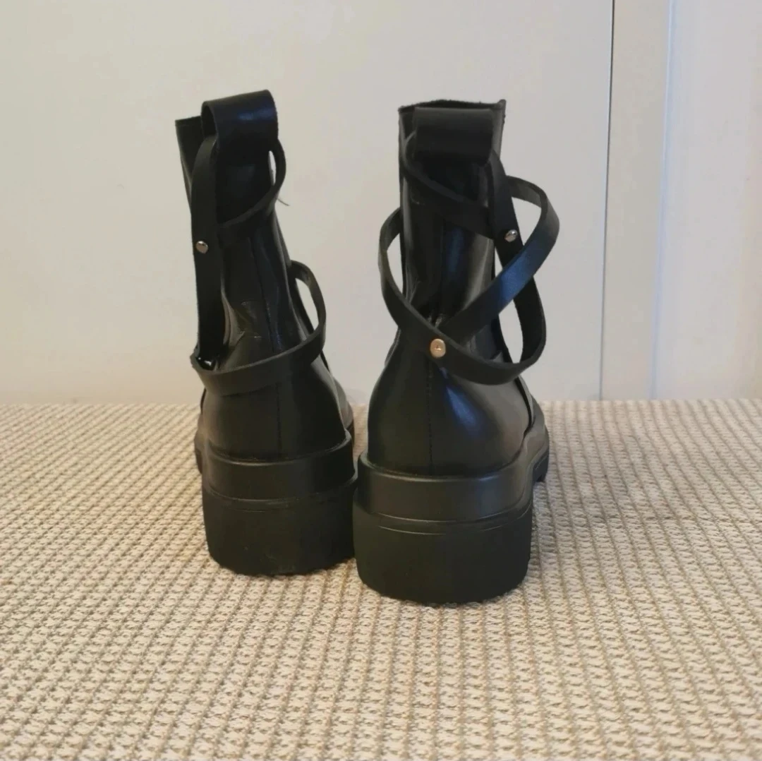 Brand New Black Leather Platform Ankle Boots - Size 7