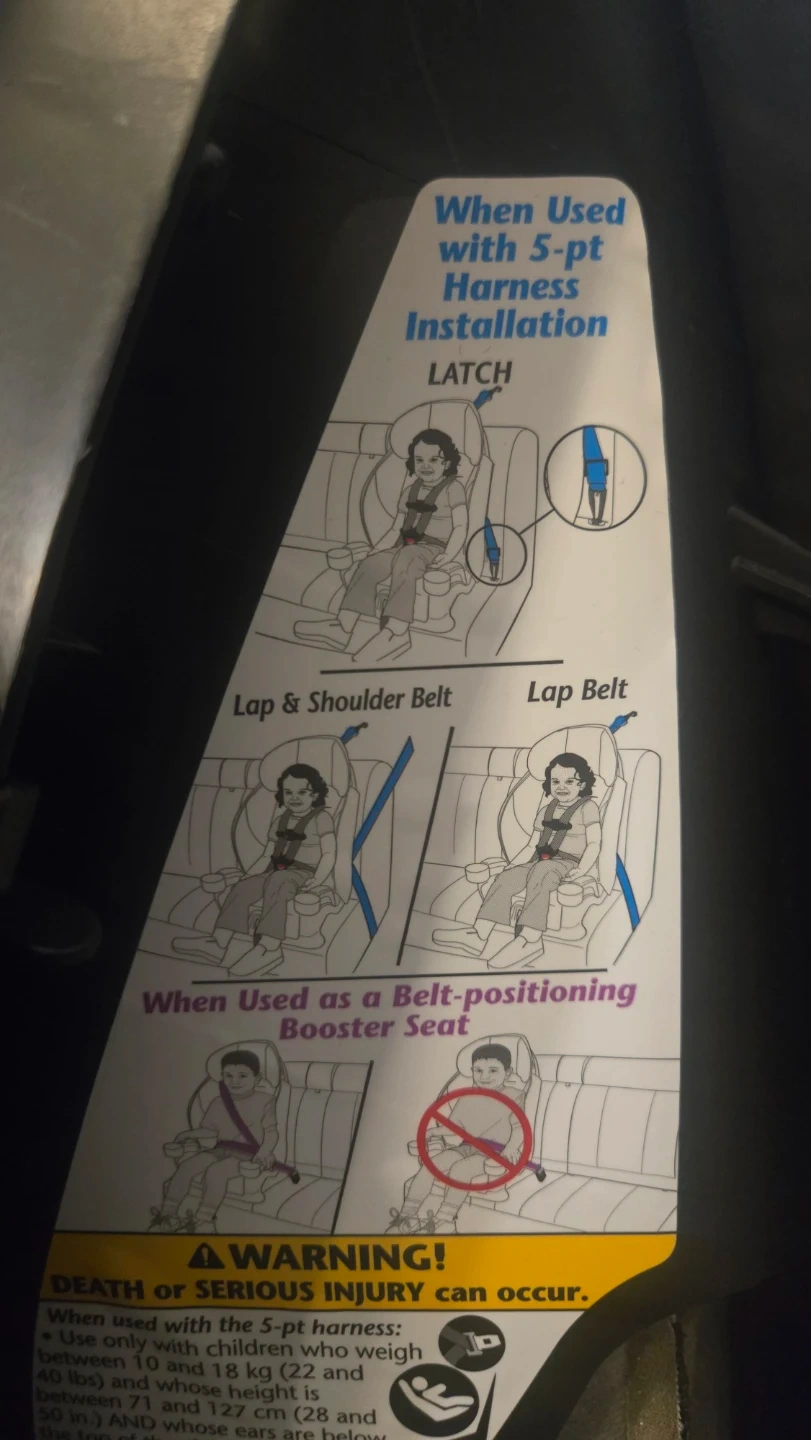 Booster Car Seat good as new with 2 cup holders and it features a 5-point harness for security and transitions smoothly to a belt-positioning booster. It's rollover tested and it's suitable for children who weigh between 10 and 120 lbs.