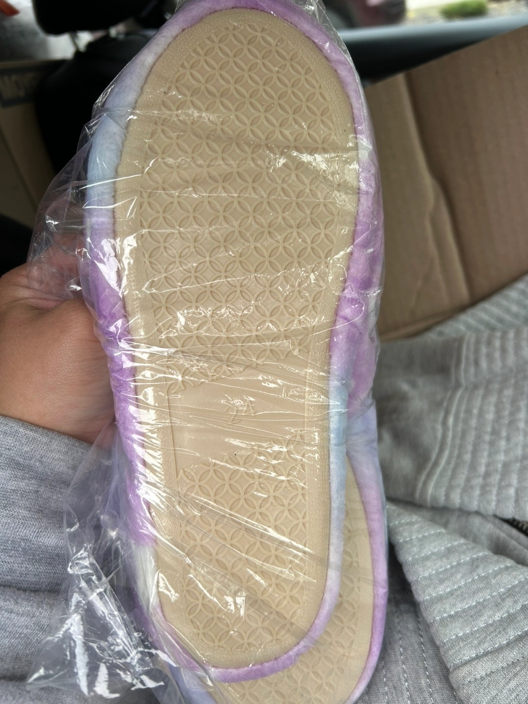 Adorable unicorn slippers, purple and blue tie-dye design. Soft and plush material. Size 7-8. New with tags. Can deliver.