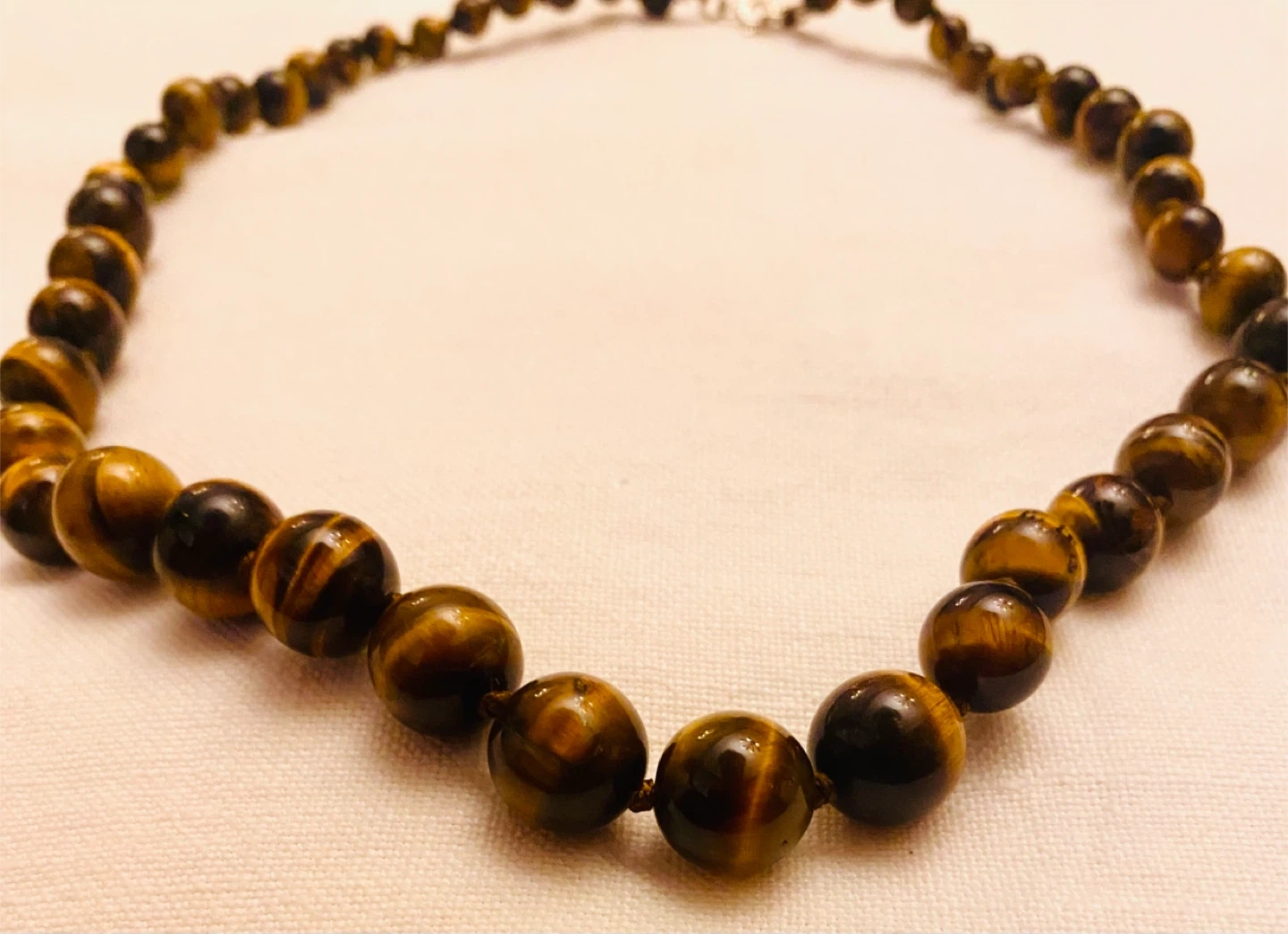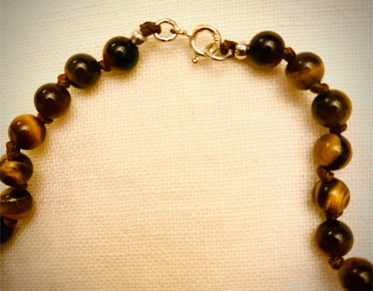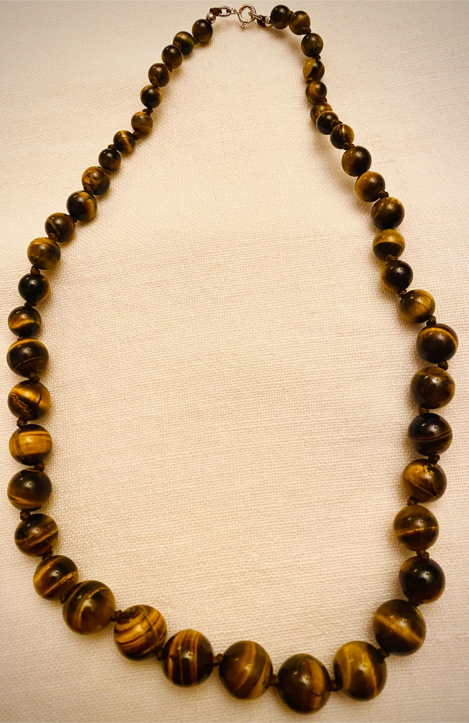 Beautiful tiger's eye beaded necklace. The beads have a lovely golden brown colour and catch the light nicely. It's in great condition and would make a wonderful addition to any jewelry collection! Has silver clasp .925