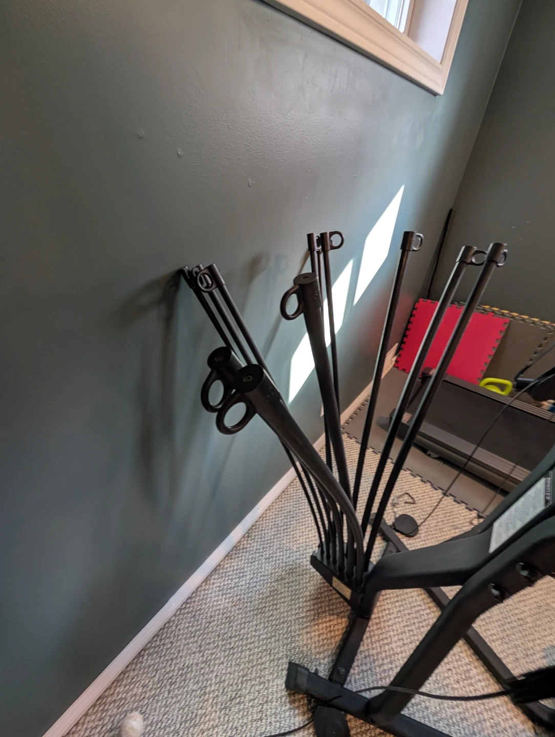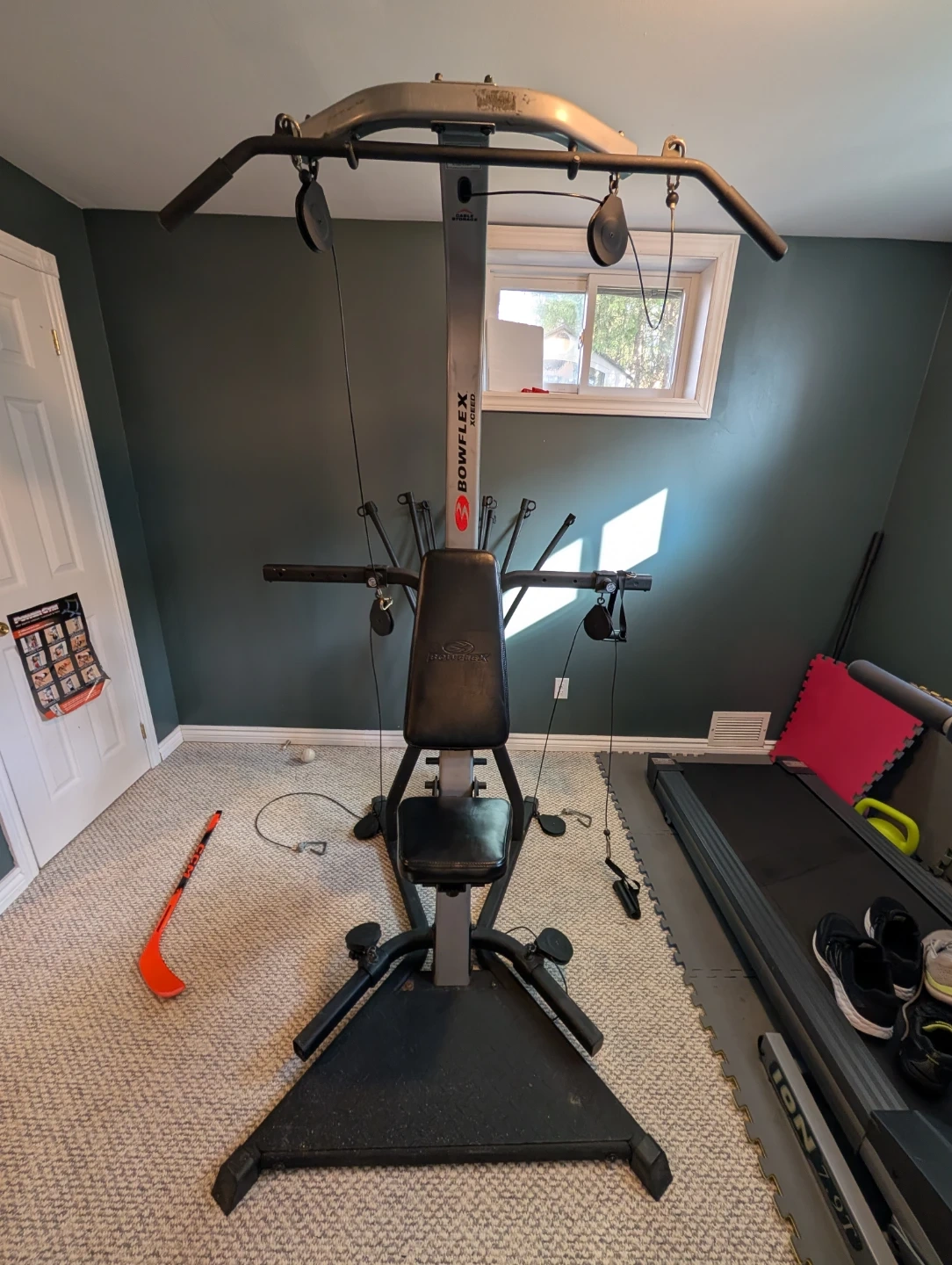 Bowflex Xceed home gym setup. Includes the main unit with seat and leg extension attachment. 320 lbs of Power rods are included for resistance training. Versatile unit for a full-body workout. $200 obo. It needs to go!