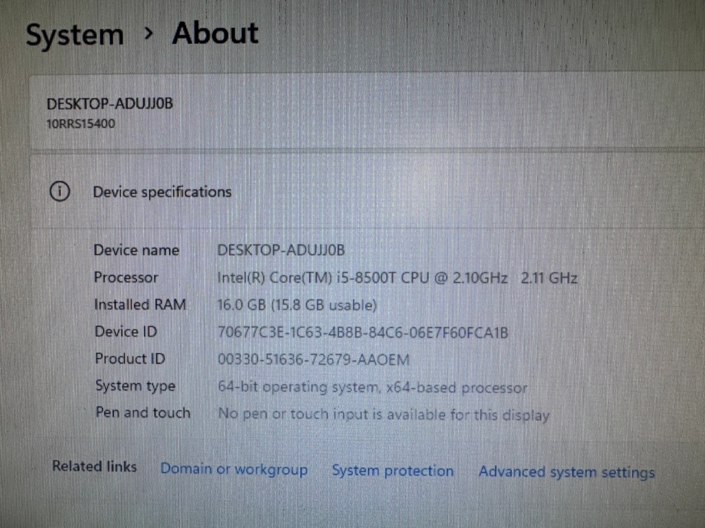 Intel Core i5-8500T@ 2.10Ghz-3.50Ghz