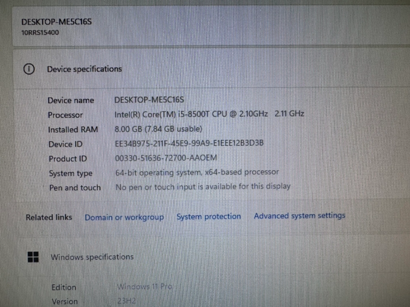 Intel Core i5-8500T@ 2.10Ghz-3.50Ghz