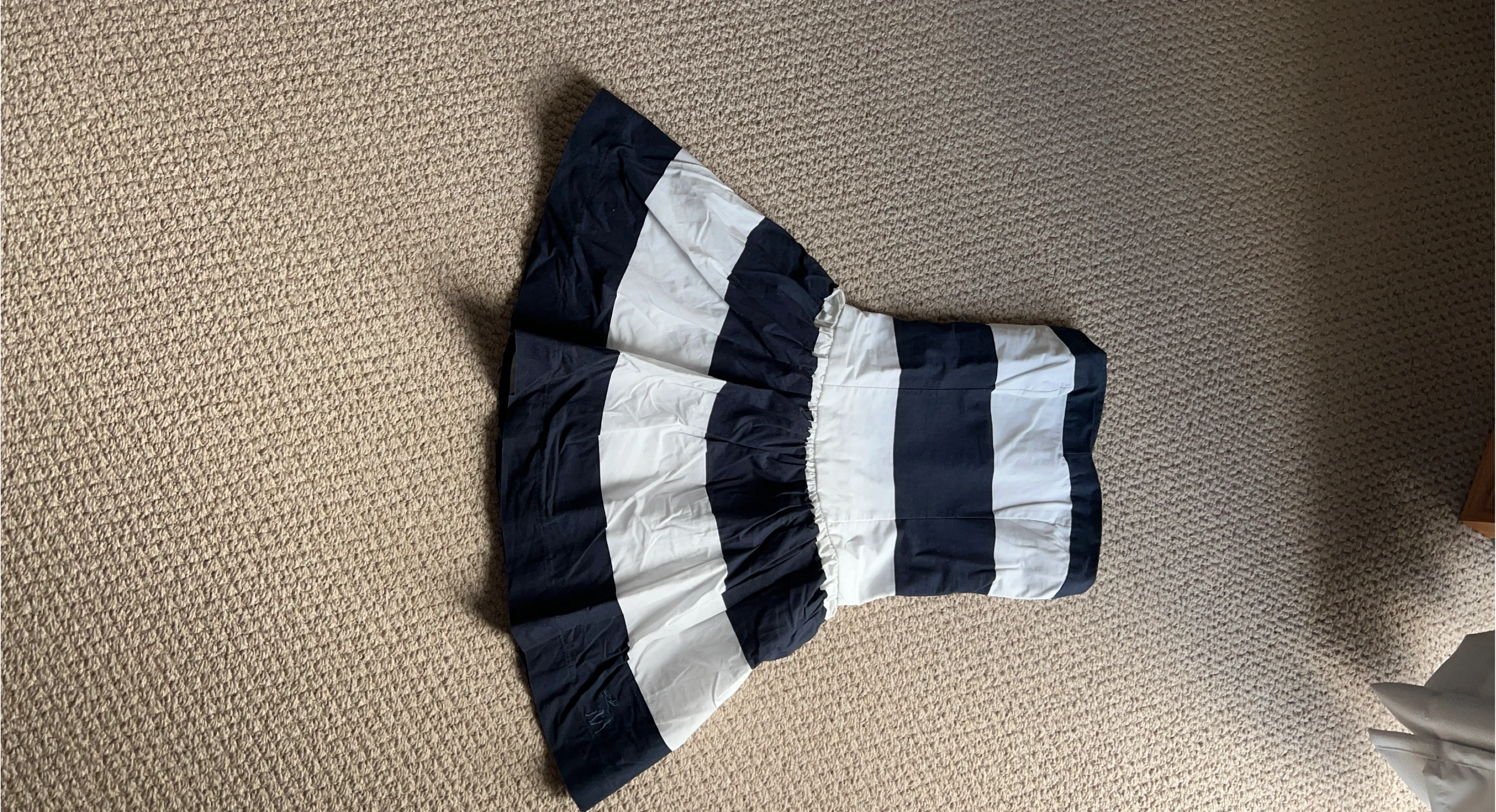Classic navy and white striped dress from Abercrombie Fitch . It's a size S and made of cotton. Perfect for a casual day out!