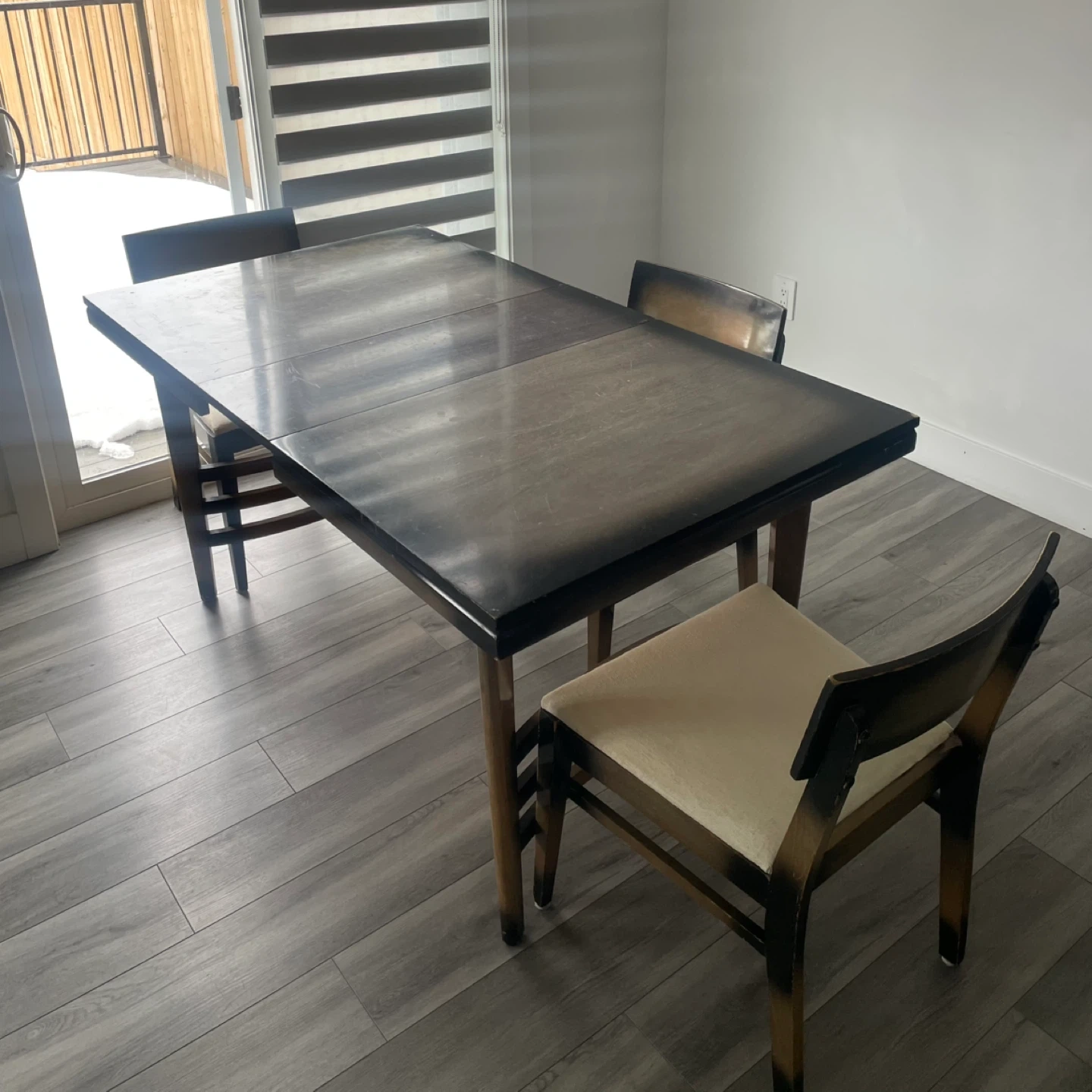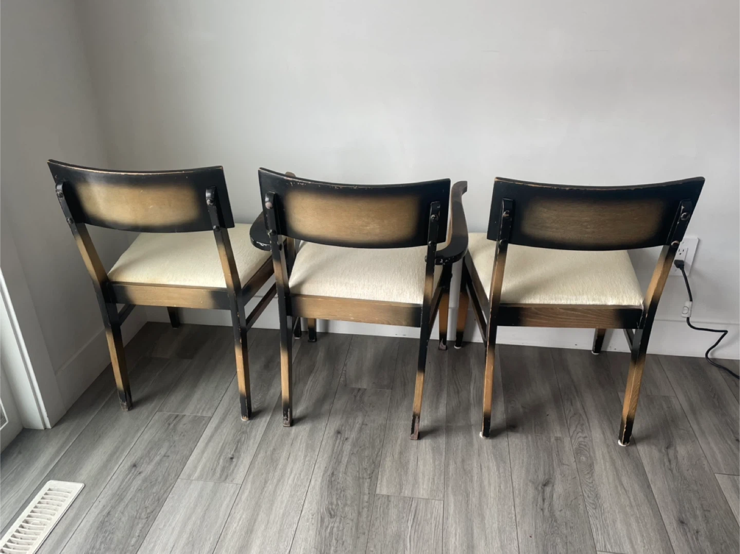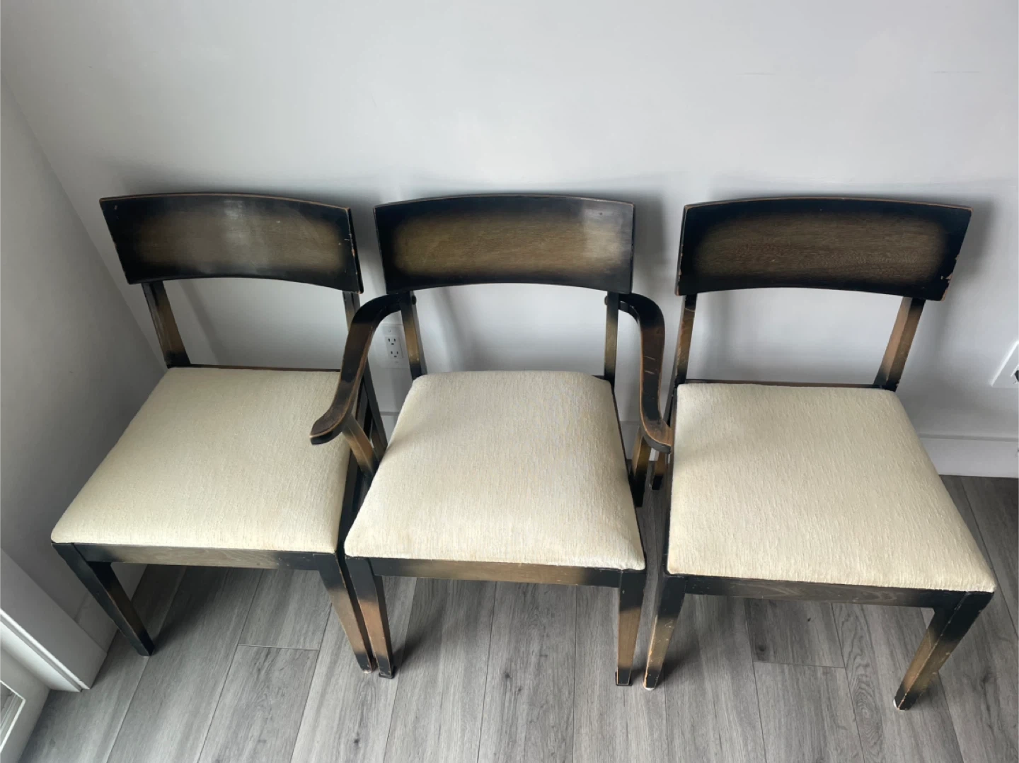 ($80 For All) Set of 3 Wooden Dining Chairs with Table. One Chair Has Armrests, The Table Can Be Extended Longer With Extension. It’s In Good Condition Has Some Wear All Round. The Table Can Be Dismantled If Needed.