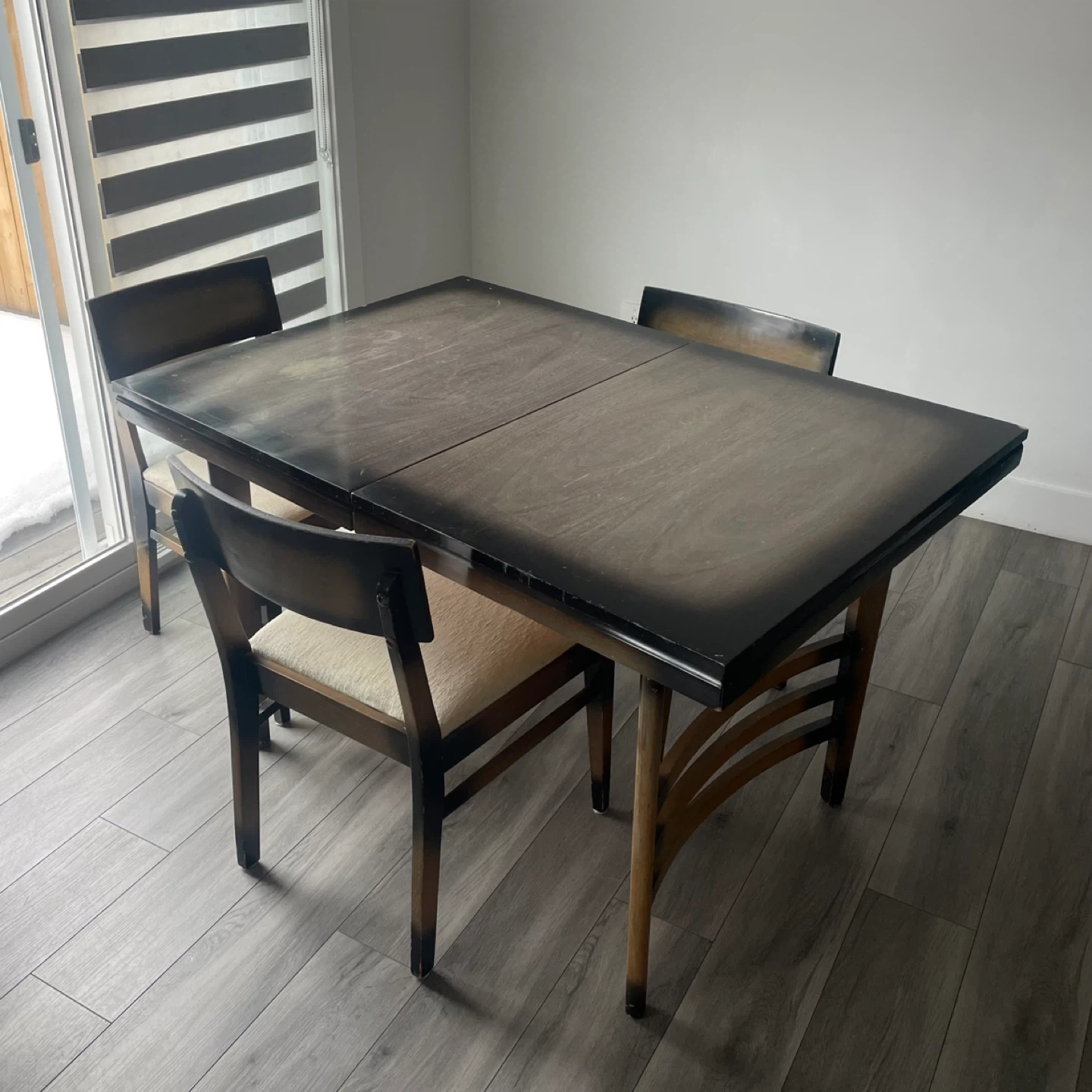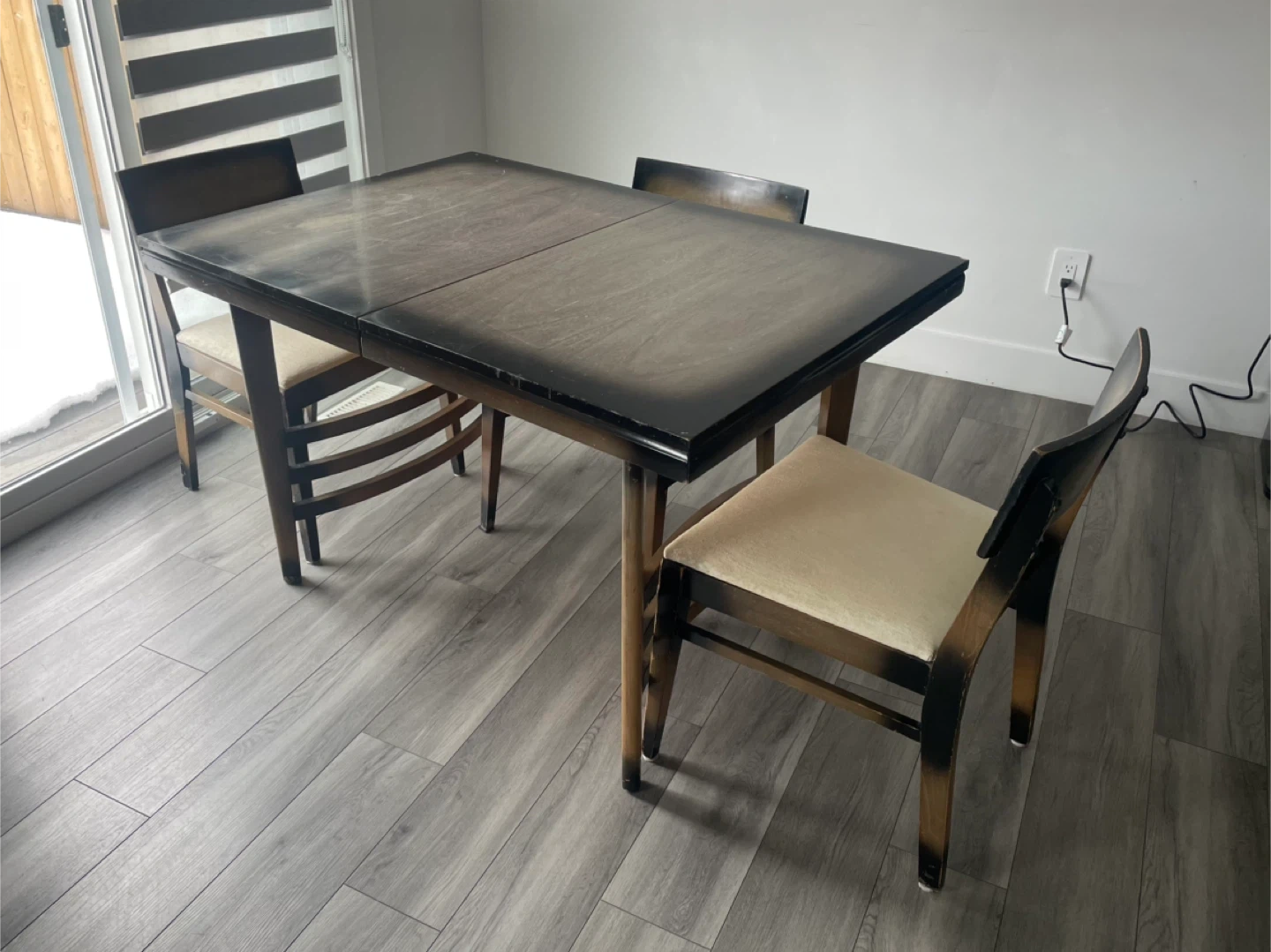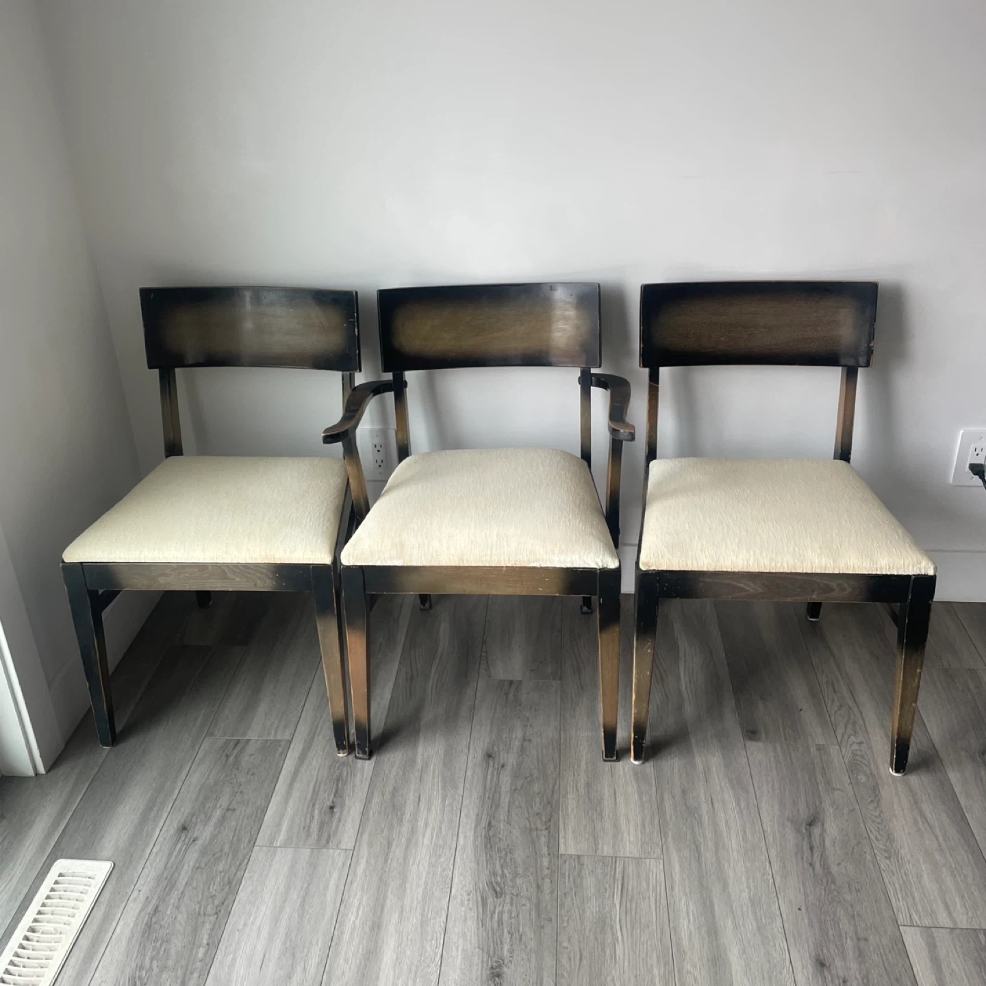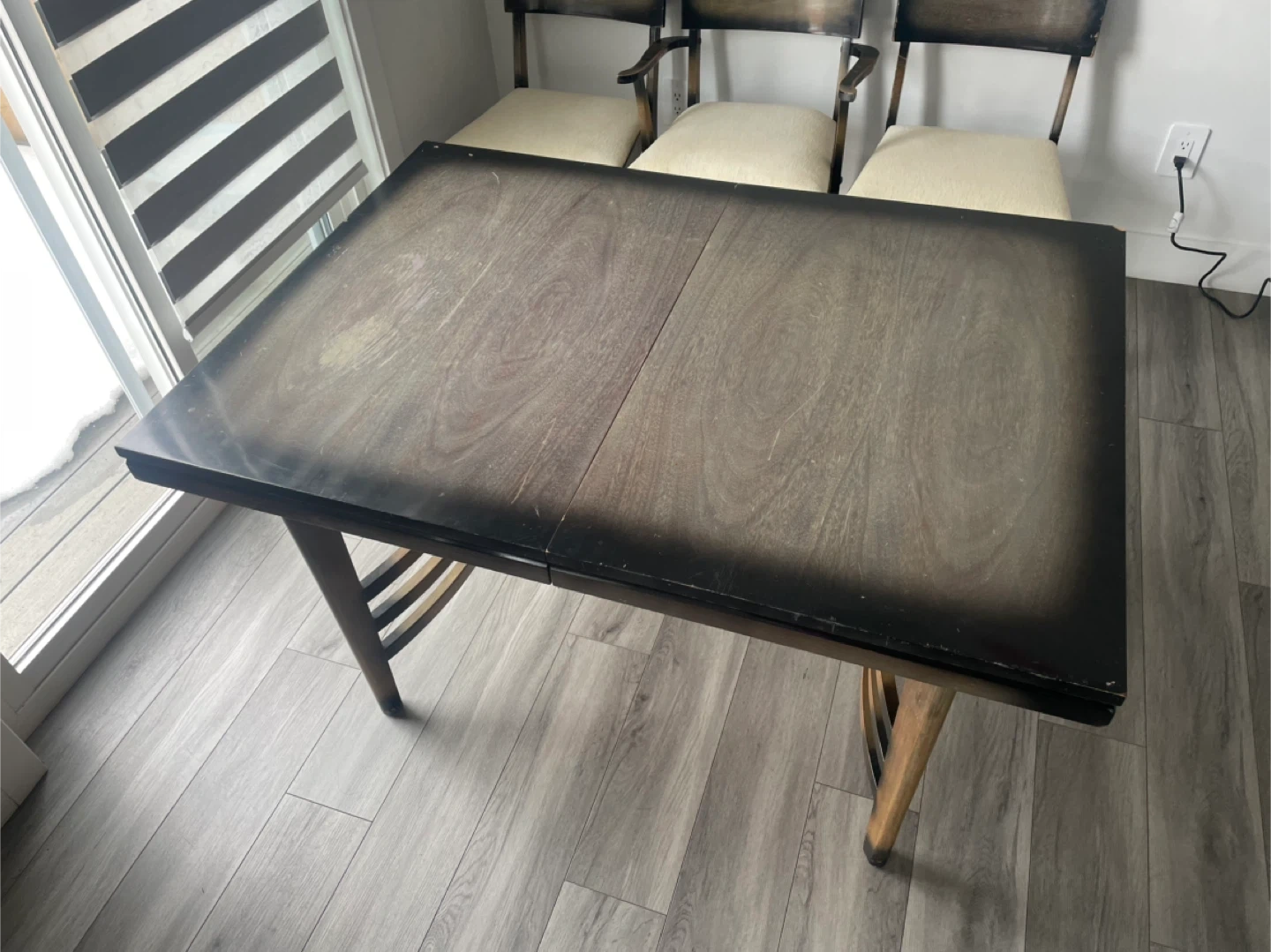 ($80 For All) Set of 3 Wooden Dining Chairs with Table. One Chair Has Armrests, The Table Can Be Extended Longer With Extension. It’s In Good Condition Has Some Wear All Round. The Table Can Be Dismantled If Needed.