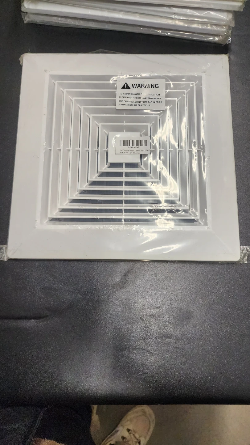 Set of white square HVAC vent grille covers. Made of durable plastic. Easy to install and clean. Includes original packaging for most units.