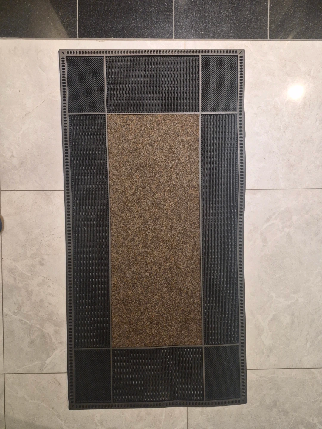 This is a durable door mat. It's made with a textured surface to help clean shoes. Suitable for use at entrances to catch dirt and moisture.