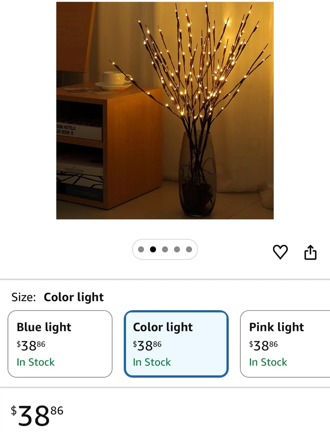 SET OF 3 PK LED TWIG LIGHT with 20 inch H stake. Includes a USB plug and a battery holder. Includes an on/off remote control. Batteries are included.