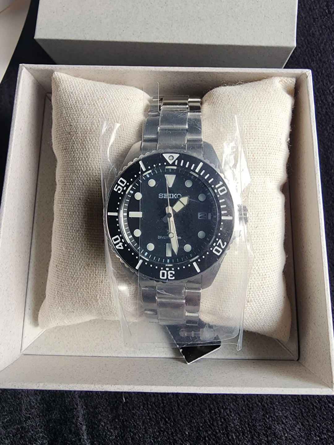 Experience reliability and durability with this brand new, unworn Seiko Prospex diver's watch, still in its original packaging. Engineered to meet professional diving standards, this timepiece seamlessly blends practical functionality with a classic, everyday style.