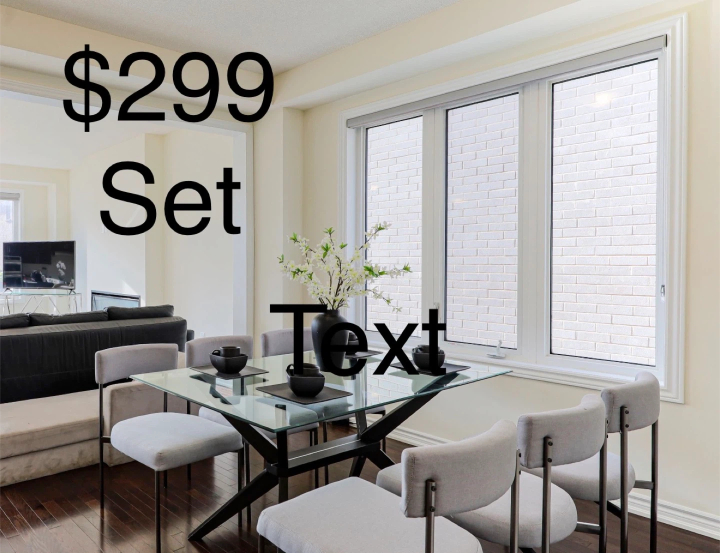 I have a large collection of staging furniture available for sale, including sofas, dining table, area rugs, and other home decor items.